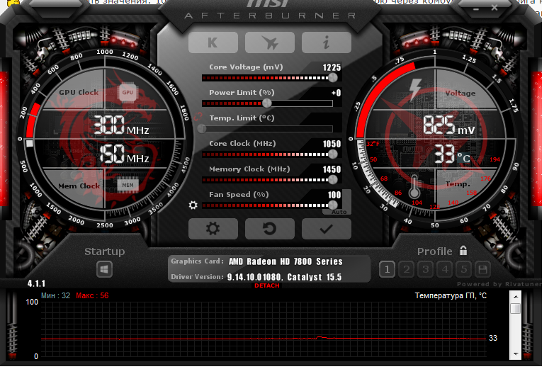 а как больше частоту ядра поднять, у меня больше 1050 нельзя, и повер лимит тоже нельзя вижу у вас на 99. У вас такая же видеокарта hd 7850 на 1 gb или нет))?