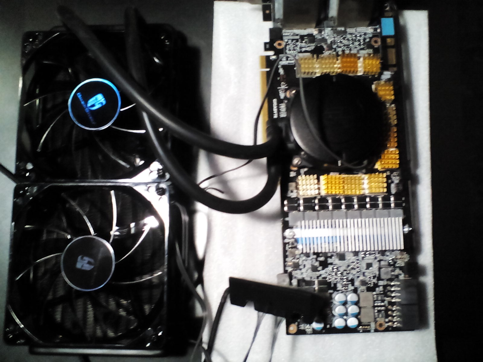 Привет , http://www.pleer.ru/_233110_deepcool_ma ... m2am2.html Сразу же предупрежу ,отверстия крепежа помпы и посадочного места видеокарты не совпадают ,колхозить надо ,у меня просто это уже не первый опыт установки проц.сжо на видеху ,поэтому я был готов к этому.