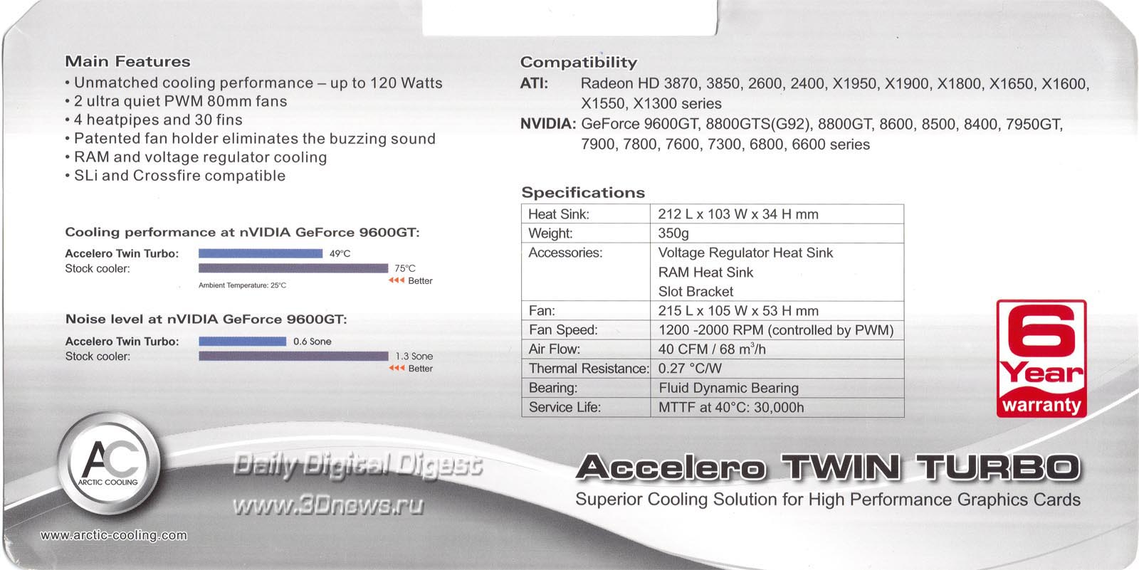 160W 250W Интересно, за счет чего эффективность возросла на 90W (что не мало) при практически одинаковых характеристиках и конструкции. Возможно просто опечатка, т.к. у обычного Accelero TWIN TURBO 120W c 4я теплотрубками и вентиляторами 80мм. http://www.3dnews.ru/_imgdata/img/2008/10/29/100890.jpg
