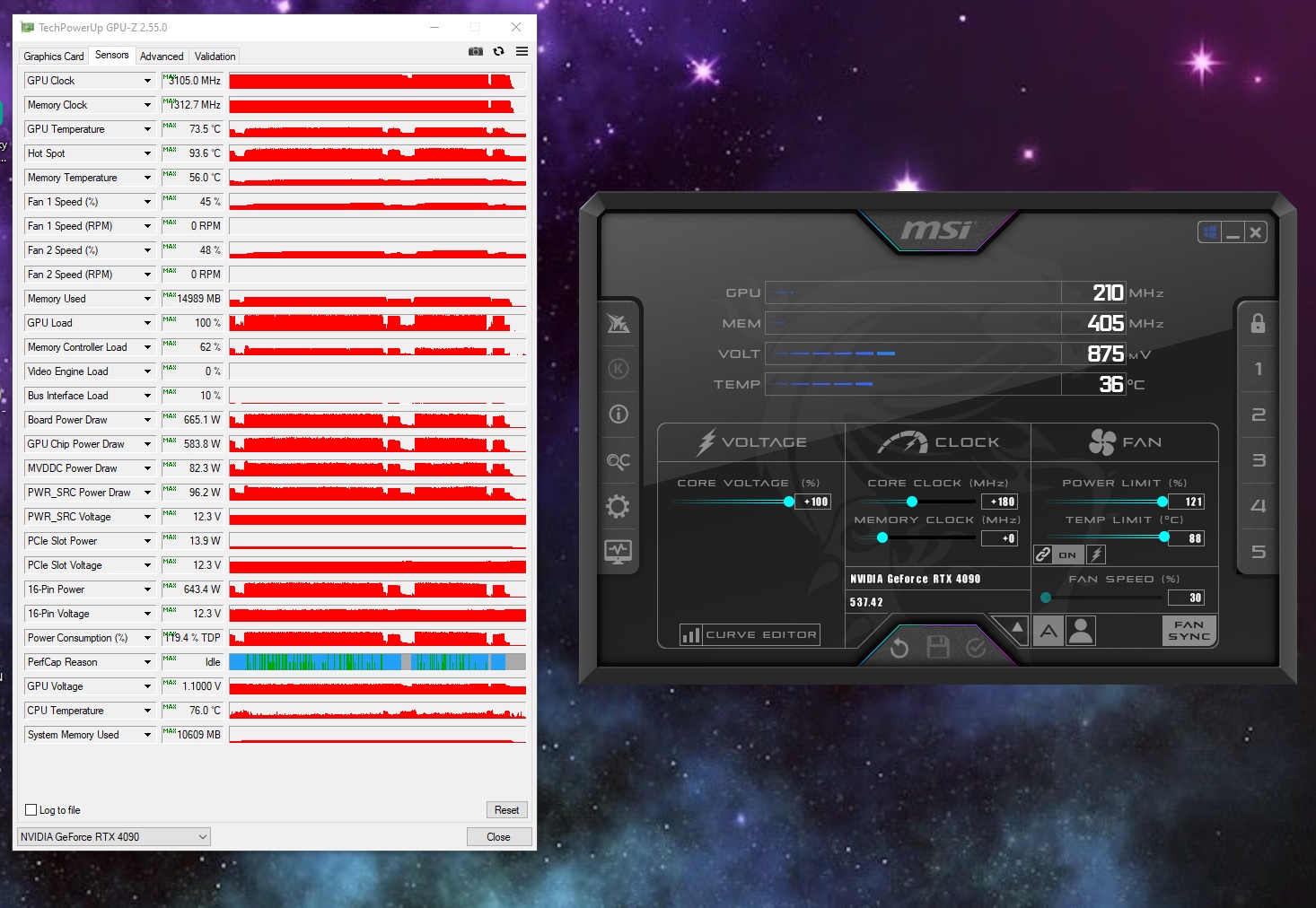 судя по показаниям напряжения, мощности и температур, там в обеих случаях максимум 1,1 В на чип в HOF AI такие настройки стоят?