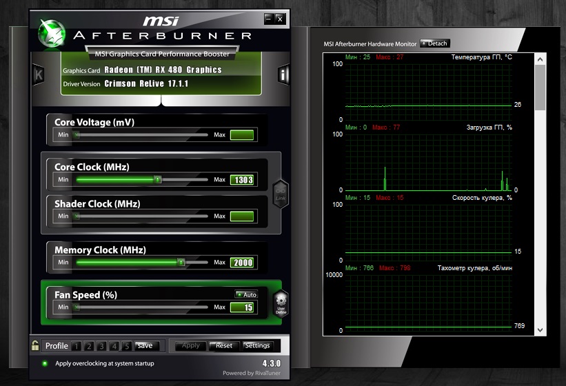 Q: Как сделать чтоб вертушки на ВК начали крутиться при 30-40 градусов, и плавно набирали обороты по мере нагрева? A: Использовать MSI Afterburner или Sapphire Trixx. Важно помнить, что нужно использовать только одну программу для разгона/регулировки карты.