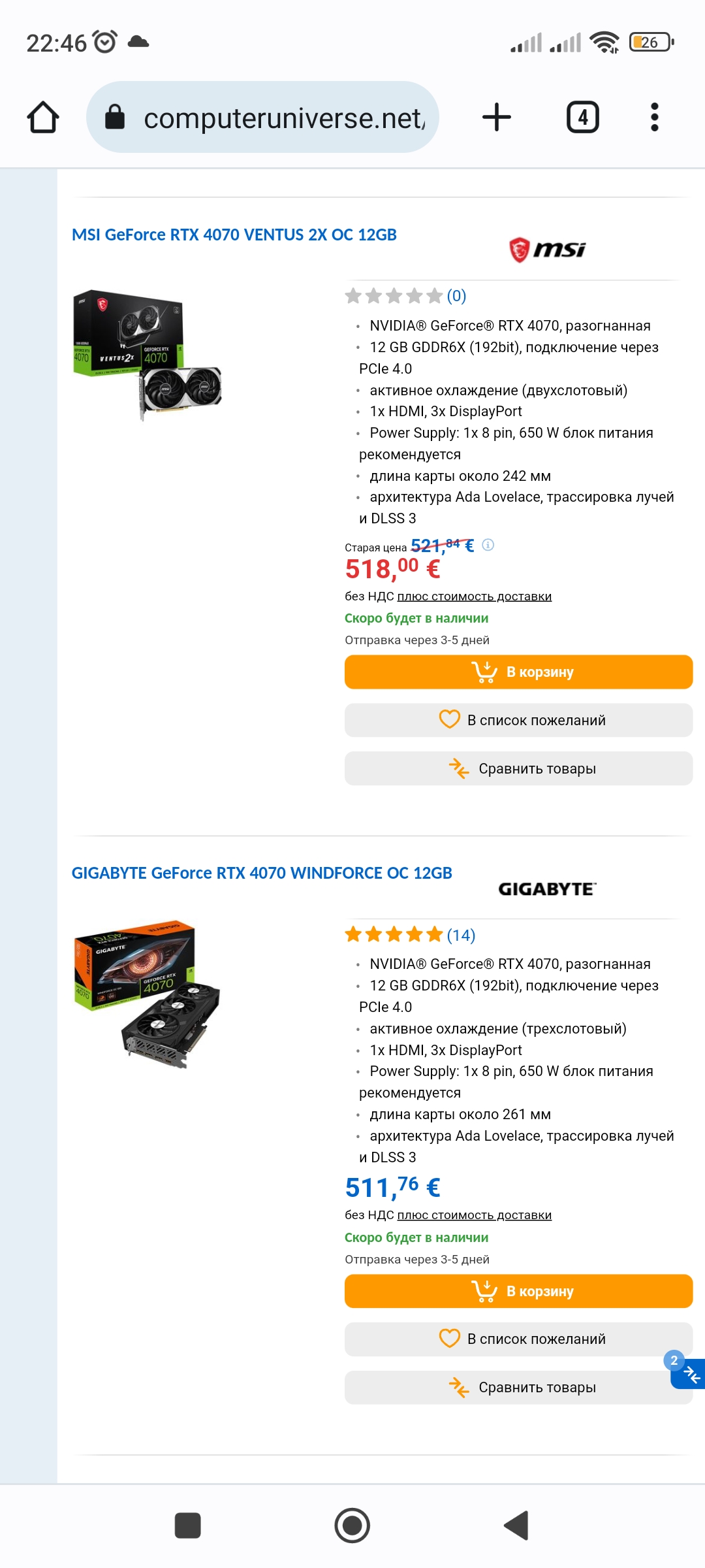 7800xt хороший выбор , когда она будет стоить на 20% дешевле 4070 , но когда они продаются по одинаковой цене , то выбор все же лучше сделать в пользу 4070. Смотрю что в Европе такая же незначительная разница в цене между этими картами. Rtx 4070 продают ниже рекомендованной цены в 600 евро , а rx 7800xt выше ррц в 500 евро с учётом налогов
