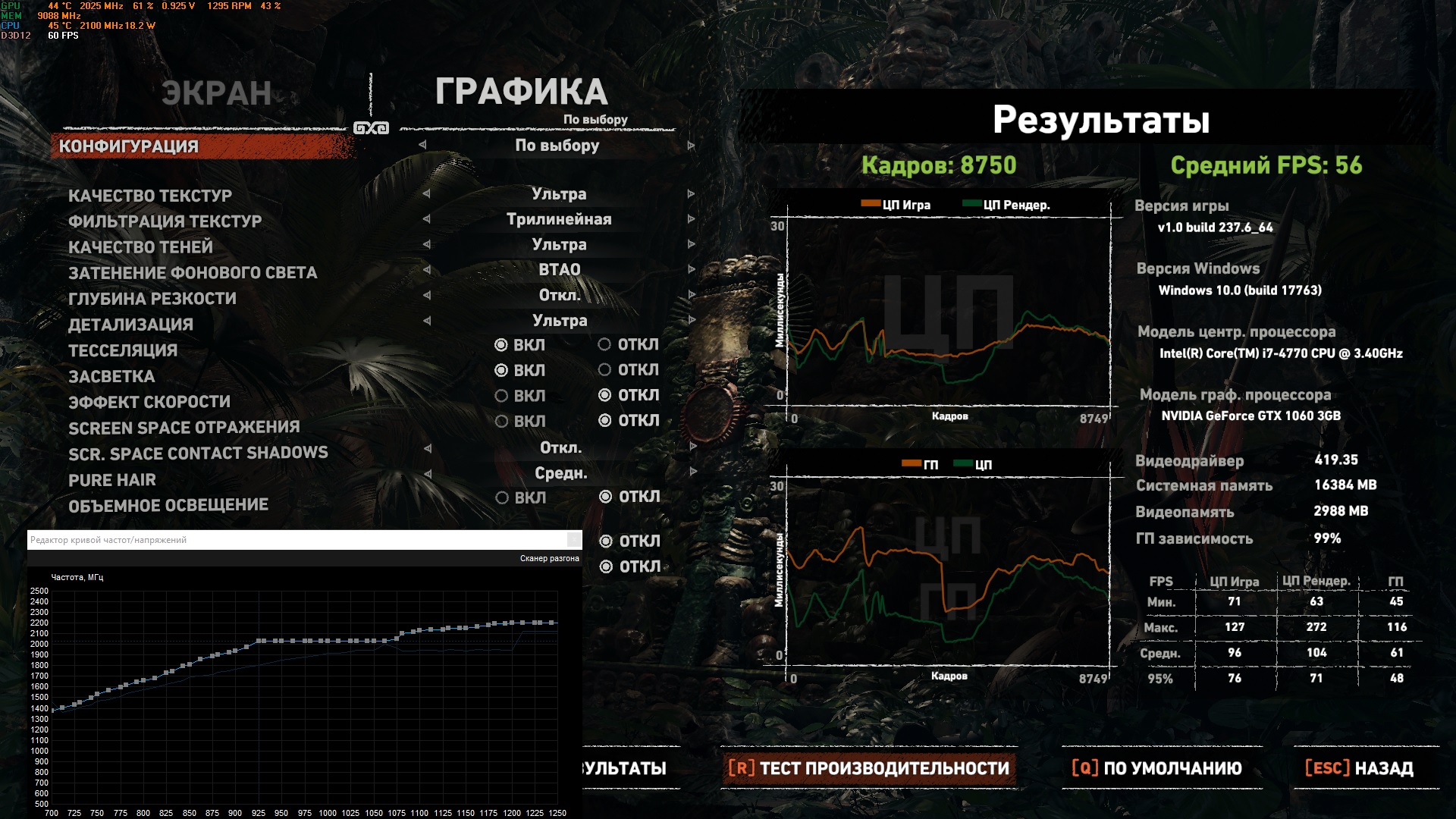 Добавлено спустя 12 минут 51 секунду: 03-09-2019, 22:48:32 MetroExodus.exe benchmark completed, 118637 frames rendered in 1897.234 s Average framerate : 62.5 FPS Minimum framerate : 0.6 FPS Maximum framerate : 76.5 FPS 1% low framerate : 38.4 FPS 0.1% low framerate : 7.3 FPS Вот такая кухня на ультрах, думаю норм. Писал на предыдущей странице.