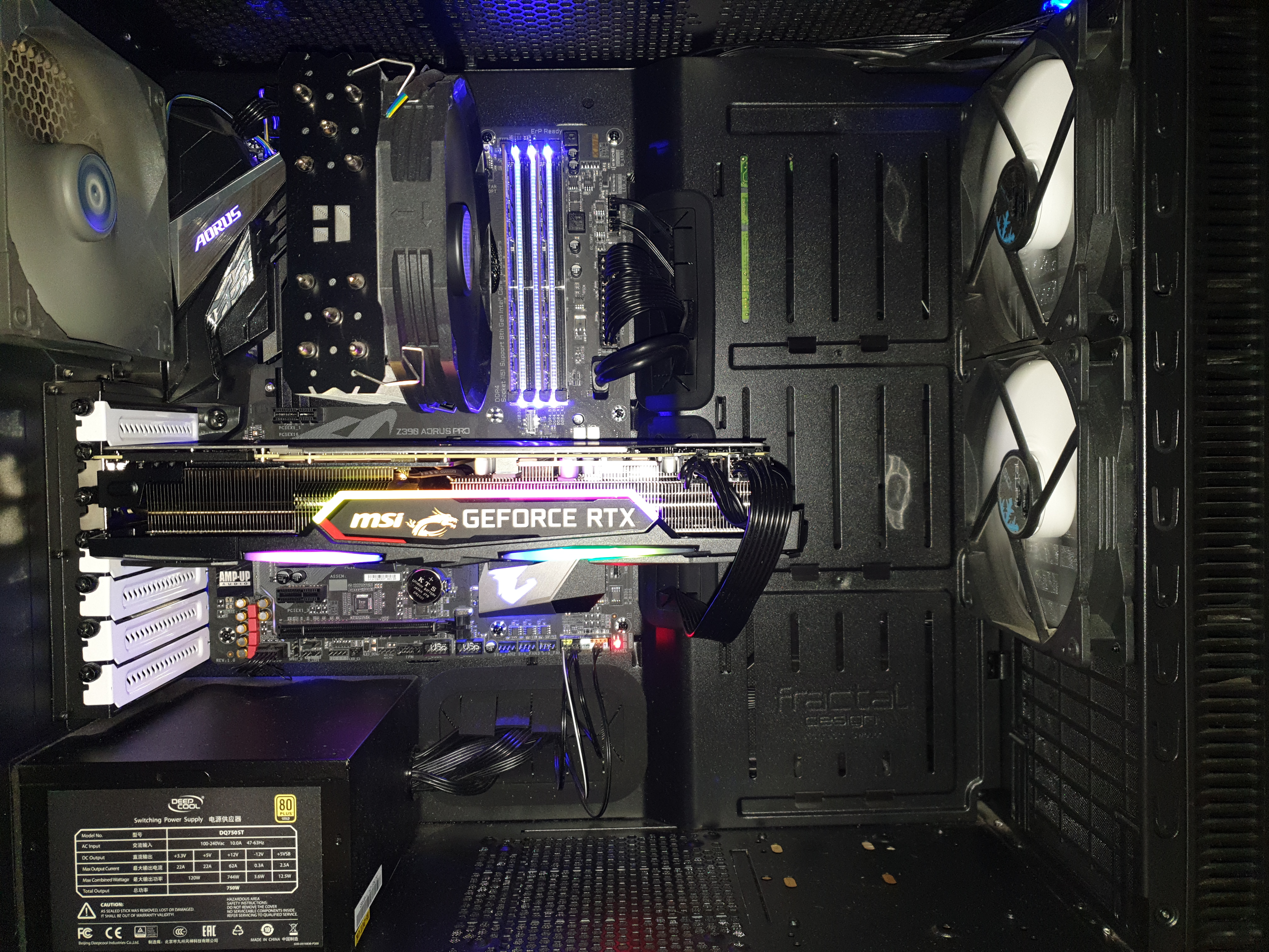 У меня Zotac RTX 2080 Ti AMP, на референсной плате, на родном биосе, с выкрученным паверлимитом до 300W и частотой 2040mhz в БФ5 без лучей 2к 144hz, в закрытом корпусе грелась до 68 с вертушками видяхи по 2300 оборотов. В корпусе стояли две 120-ки на вдув и две 120-ки на выдув (одна сзади, одна сверху), корпусные на 700 оборотов. При этих же условиях, но со снятой боковой стенкой, температура видяхи падала до 62, обороты те же оставались, сфига ли, мне не понятно было, поэтому приколхозил две вертушки на выдув сбоку карты, и прошил биос от EVGA XC Ultra, при том же паверлимите 300W и частоте 2040mhz в БФ5 без лучей 2к 144hz, получил 69 градусов, при 1600 оборотов или 75 градусов, при 1400 оборотов, со снятой боковой стенкой и очень тихую систему.