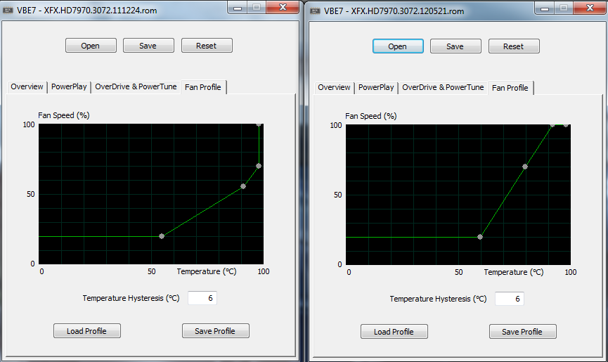 График посмотрел, в общем он у меня где то 95 градусах начинает повышаться до 100%, но видяха до этого теперь перестала доживать и отваливается на 90. Правильно понимаю, что с помощью этой программы график поправить и обновить биос? Как его залить?