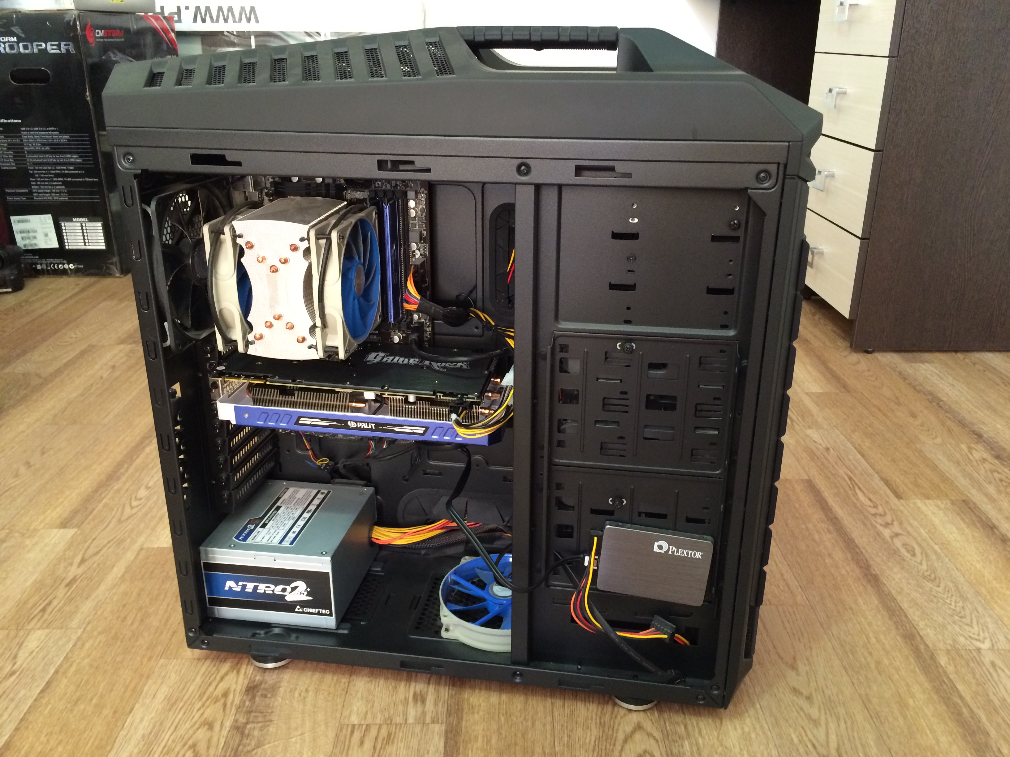 В Cooler Master Storm Trooper перекашивать и не должно, там на стойках под мат-плату есть проточки, материнка встаёт как положено, вот замечательный пример как должна устанавливаться материнка в корпусах. Но видимо другие тазо-воятели не могут гарантировать совпадение отверстий для установки комплектующих.