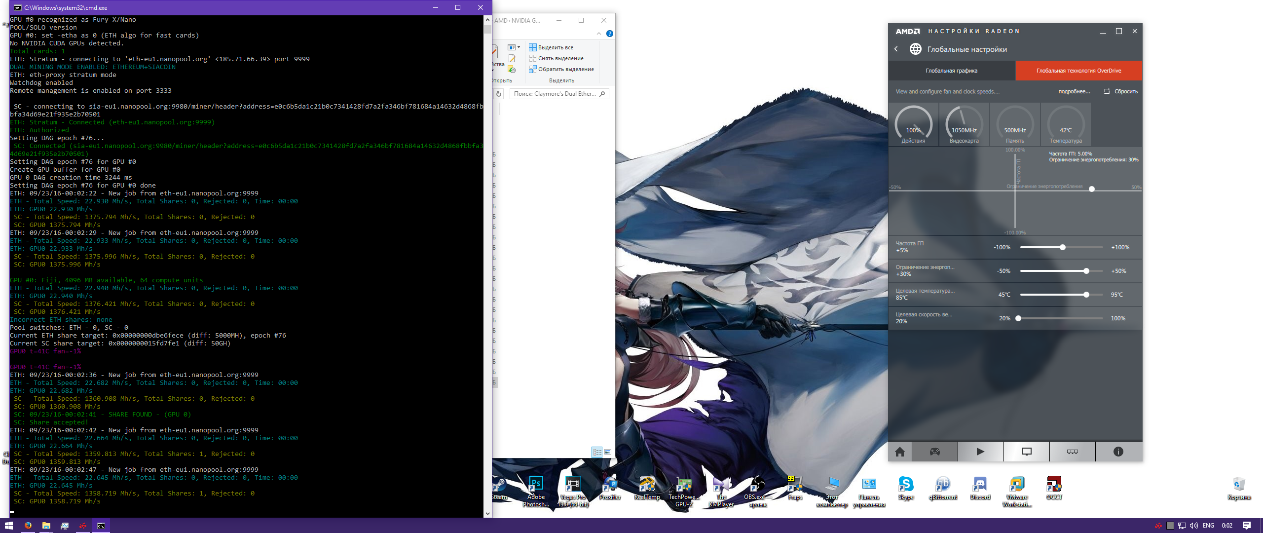 Круто. Спасибо вам большое. Там по сути получается- конвеер у фурии, при майнинге эфире постоянно простаивает- львиную долю времени идет обращение к памяти- чтение\запись. И пока идет простой- можно помайнить другую монету, на другом алгоритме. На первом скрине у вас эфир 29.6 мн, добыча СИА- 444 мн. Приоритет добычи СИА- 30. ( регулируется вручную от 0 до 200) На втором скрине эфир 28,8 мн (минус 4%), добыча сиа 865 мн ( плюс 95%). ( приоритет 60)