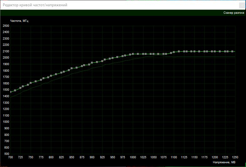 Мой график, 1911мгц 900мв, это после прогрева карты до целевой температуры, на холодную график выглядит иначе. Настраивать график соответственно надо тоже приблизительно при той температуре, с которой планируете играть.