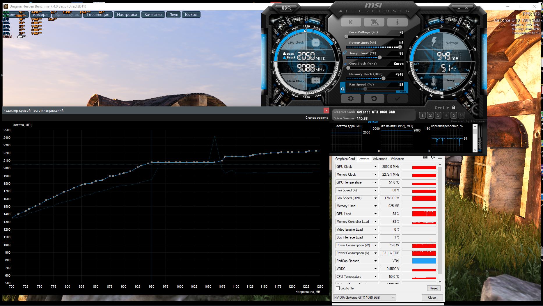 Т.е только при достижении 862 мв ситуация как-то поменялась. До 900 включительно температура не падала. Однако стал замечать что и нагрузка на карту скачет и максимум составляет 97% от заветной сотни. Хотя возможно дело в конкретной игре. Отсюда вопросы: 1. Не снизил я своими действиями производительность карты? 2. Судя по моему графику выше стоит все оставить как есть или же можно подкрутить что-то еще для улучшения результата?