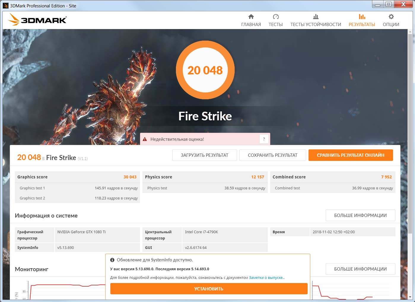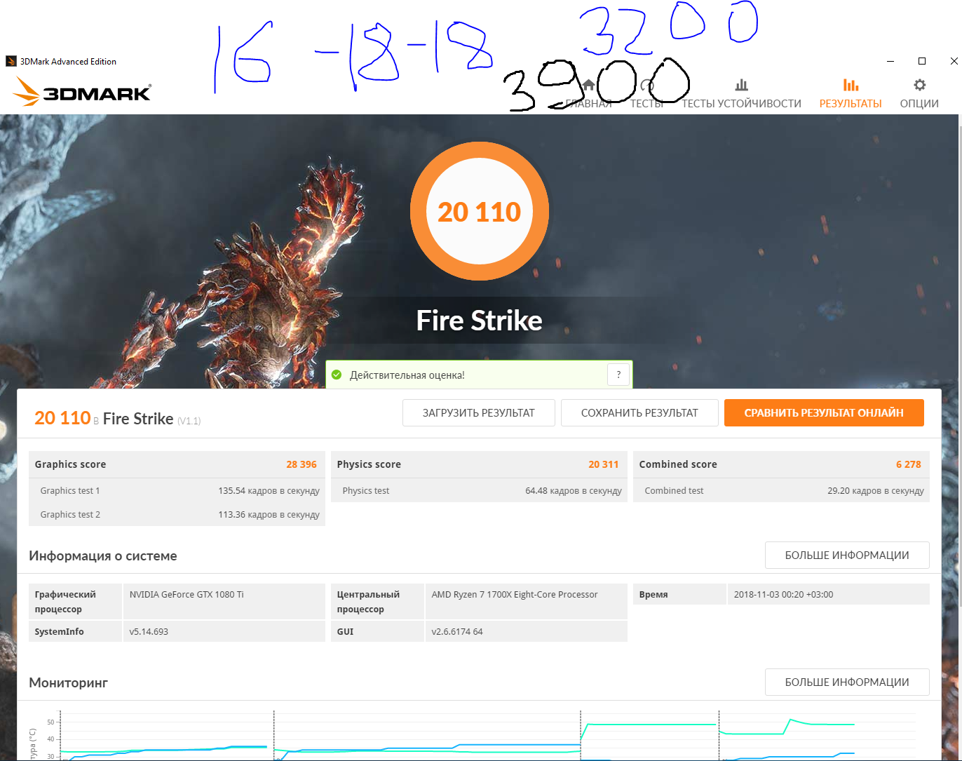 Переустановка винды ничего не дала, смена драйверов на 399 добавила +1000 попугаев в ФФ! Что также интересно, посмотрел в ютуб тесты Fire Strike, моя 1080 ti набирает аналогичное число попугаев graphics score - 30000 Остался последний вариант это заменить материнку на другую с чипсетом Z97. Других причин почему мой результат значительно от этого не вижу: https://forums.overclockers.ru/viewtopic.php?p=15859234#p15859234 И мой совет тем кто задумается купить Inno3D GeForce GTX 1080 Ti X4 iChill - охлаждение говно! В crysis 3 после 10 мин. при полной нагрузке на видеокарту 92 гр.