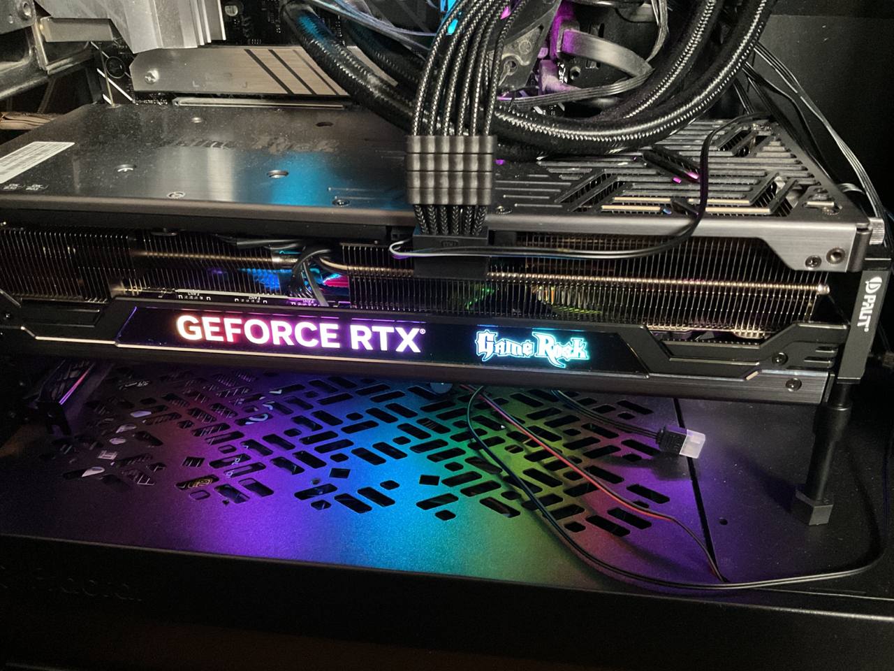 Из конструкционных недостатков моей (и не только) RTX 4080 хочу отметить прямой выход переходника питания карты. Если корпус узкий или на боковой панели вентилятор, то может не хватить места для проводов переходника питания. Формально у меня провода переходника изгибаются и касаются боковой стенки корпуса. Изгиб плавный и некритичный, но у некоторых могут возникнуть проблемы. Если проектировать нормально, как инженер а не как муйло, то нужно было изначально под 90 или под 180 градусов делать конец перходника который в карту вставляется. Не зря сейчас продают отдельно такие переходники. Придётся купить...