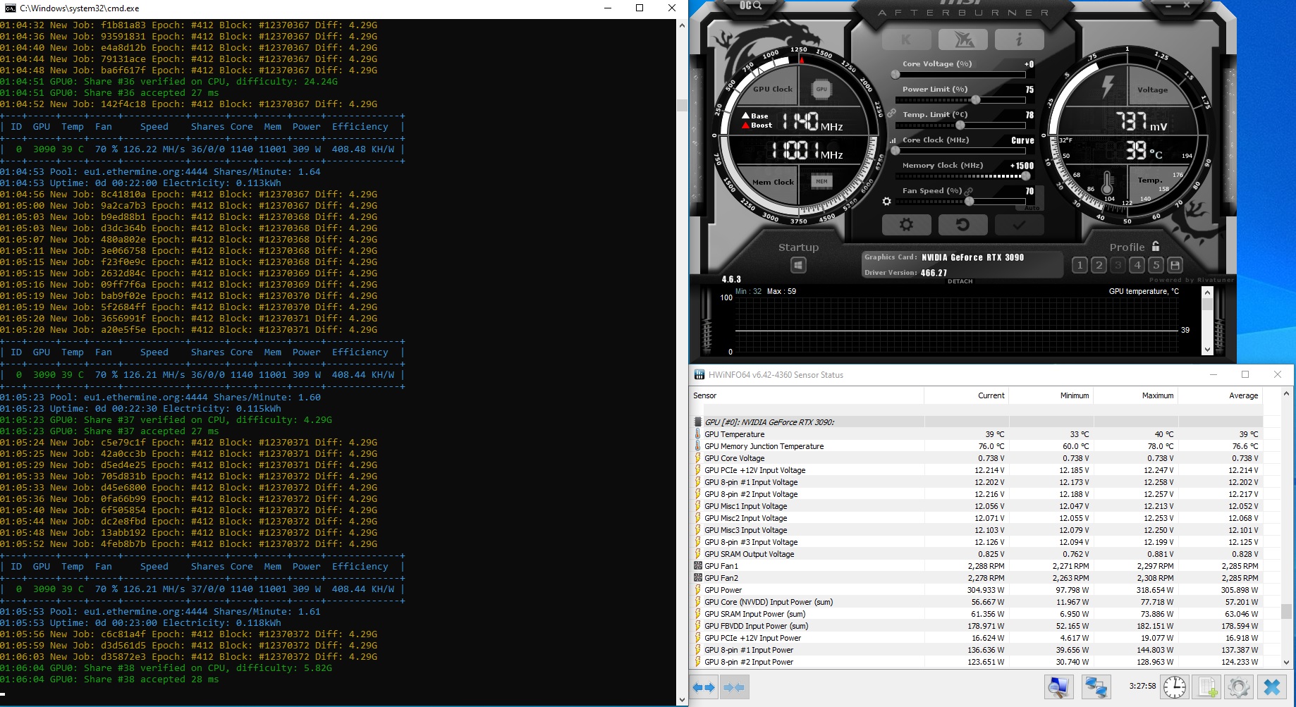physic76 ну правильно частоты скинуло оно и в АВ и в майнере покажет одинаковые частоты на +1500 должно быть 11250, моя так не могет +11250, nbmaner 37.2 сейчас самый быстрый для нвидии
