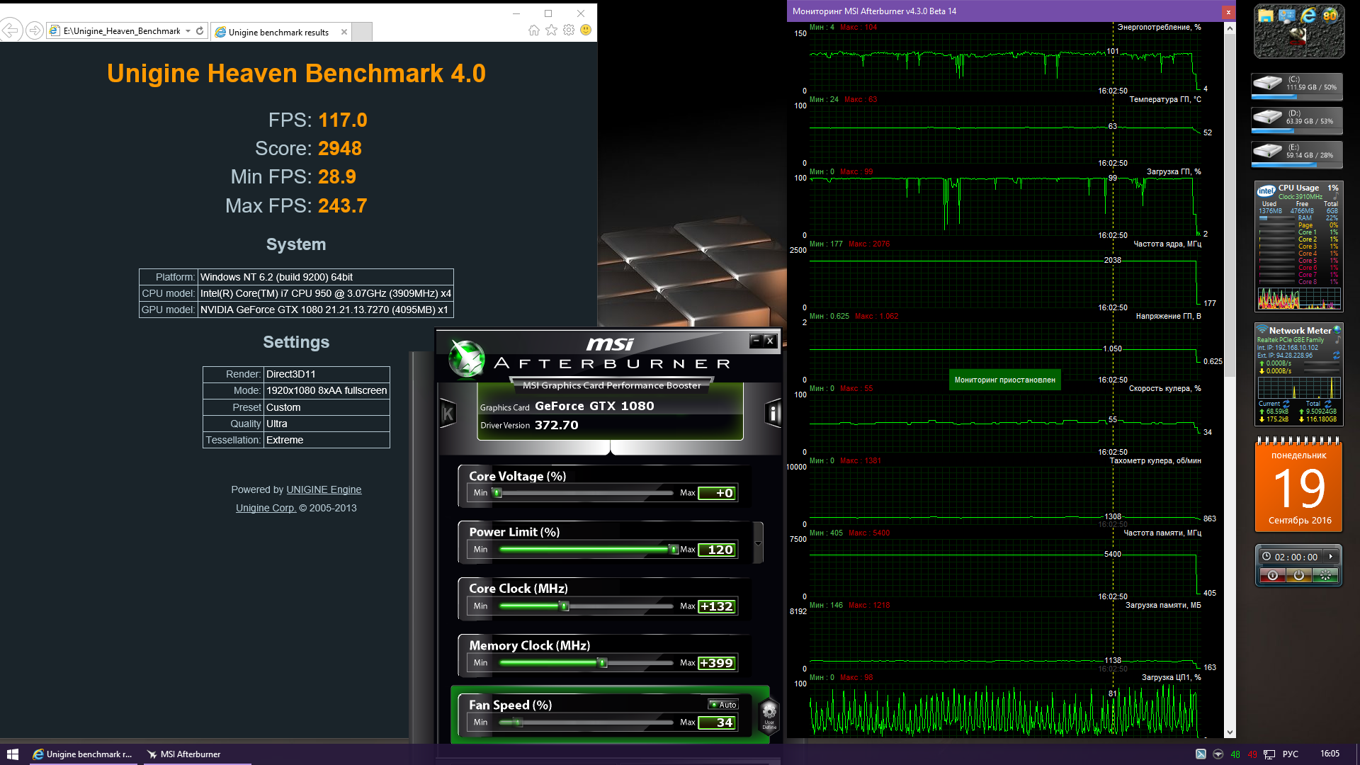 Где?, в хеване у меня тоже работает, но в играх писал чуть выше. Покажи что ли тайм спу из марка с графиками, что бы увидеть 2100 в нагрузке. Кстати щас покажу 2 скрина под хеваном с разгонами 2038/10800 и 2038/11000 и результат меня удивил из за последних 200 МГц по памяти, 0.9 фпс для хевана немало. Такую же картину вижу и в тайм спу, разница в сотню, что тоже удивило. Для сравнения ещё скрин хевана 2100/10600.