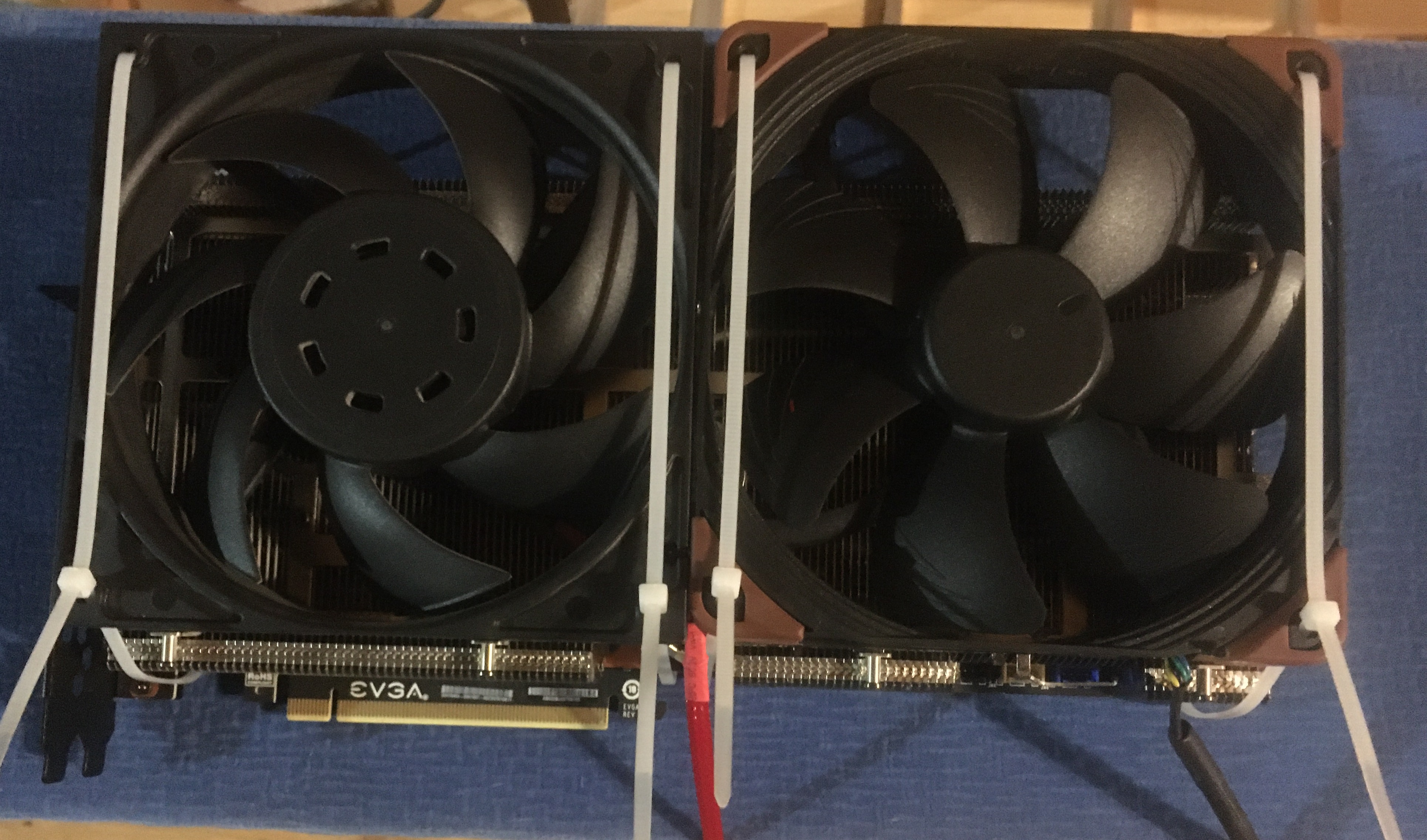 нет просто у меня были эти 2 вентилятора на 140 мм. Просто однажды мне захотелось попробовать поменять их местами т.к я подумал, что лучше уж вертуху которая на 12в поставить спереди, а вардар на 7в сзади и получилось что карта на 3С стала горячее. Вардар уж слишком сильно орет на 12в (2500 об) по этому держу его на 7в. Просто стало немного не приятно что супер распиаренная ноктуа на 12в дует хуже чем вардар на 7в (я хз скок у него оборотов на 7в, но на 12в у него 2500).
