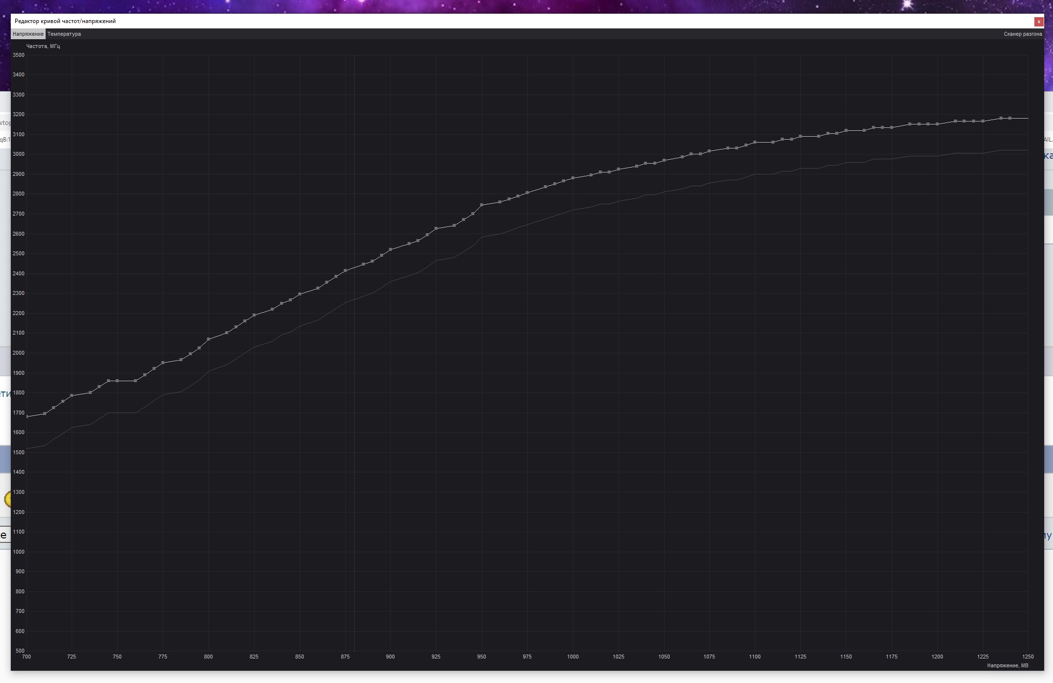 что там в диапазоне между максимальным напряжением и 0,875 В не важно, так как вк всё время будет работать на максимальной частоте