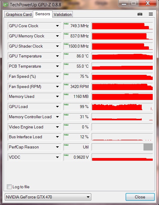 ну и заодно можешь повторить вот эти скрины - тут карта с притертой крышкой и основанием кулера, и напруга пониженная: вентиль на автомате - #77 а тут вентиль 100% - #77