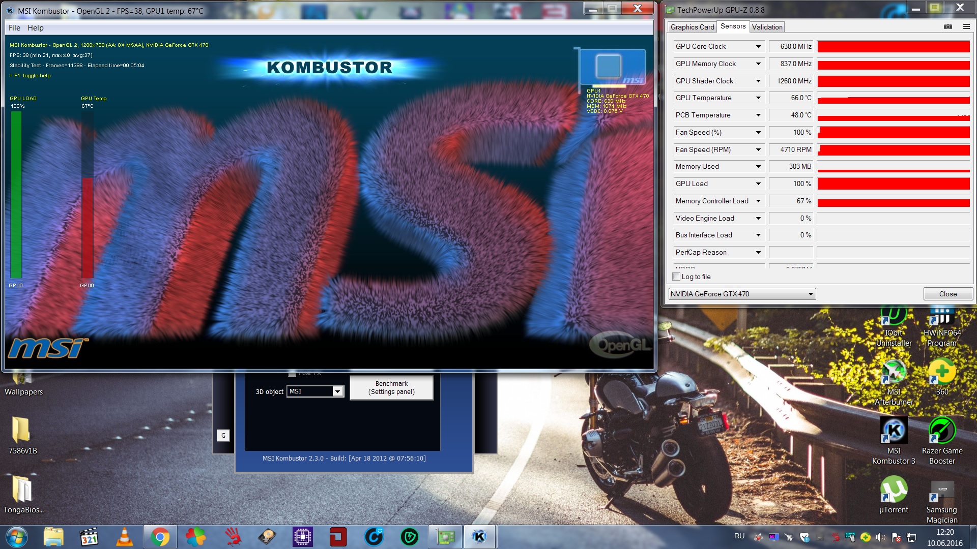 ничего хорошего, кроме удивления как такой кристально честный камрад умудрился тестировать на совершенно другой версии комбустора? обман-с получается. ты давай ставь MSI_Kombustor_Setup_2.3.0