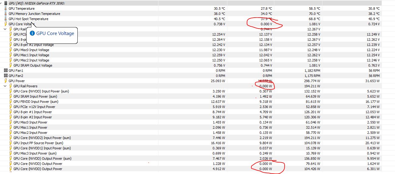 Являюсь владельцем 3090 TUF OC , подскажите это нормально для видеокарты "в простое" когда происходят просадки до нуля по GPU Voltage,mV ? Ранее была карта 1080 от Гигабайт, и там такого не наблюдал.