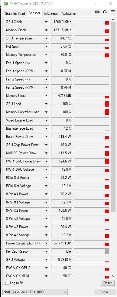 У меня палит 3080 геймрок ос. Без обдува задней стороны температура в майнинге улетает к 96 С. Жор 221 Ватт, ядро минус 500 МГц, память + 1500 МГц, Пл 60. Хешрейт 101.4 МХ