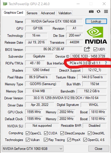 Недавно столкнулся с такой проблемой: при установке видеокарты GTX 1060 G1 Gaming Rev. 2.0 (6гб) на плату am4 напрочь отказывается работать в разъеме pci-e 3.0 x16! В чем может быть проблема? в разъеме pci-e 3.0 x4 работает. Пробовал на трех платах с AM4 запускать. Сейчас работает на lga 1155 с pci-e 3.0 x16, НО... GPU-Z показывает режим x8 1.1 под нагрузкой x8 3.0. .
