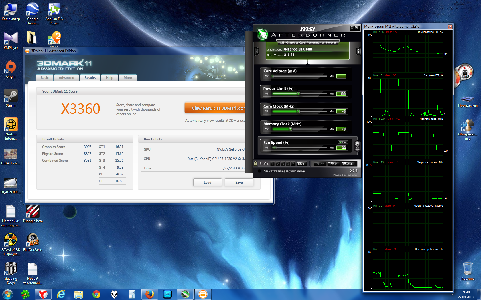 Проц у тебя слабоват. За 660 не скажу, а 670 40000+ по GPU Score набирают Результаты в 3DMark Vantage #10874929 В общем, 770 должна +/- 40тыр набирать. F@tality, попробуй дрова переставить. Хотя, может и ОС тупит. Вчера гонял марк11 на 326.41, без изменений. Смотрю ты ифон выиграл