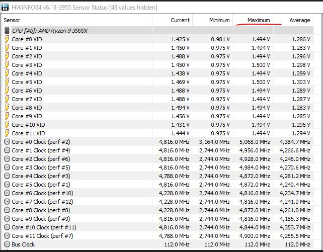 У меня 3900XT, в небольшой оптимизации по ядрам. В "голом" бусте тоже на одно ядро много накидывал, изредка! А так лучше напряжения пониже и температуры постабильнее...