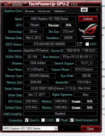 Название моей карты - Sapphire Radeon HD 7850 920Mhz PCI-E 3.0 2048Mb 5000Mhz 256 bit DVI HDMI HDCP. В общем прошивка на двадцатый раз удалась, попался хороший биос полностью совместимый с моей картой и я взял рекордные и нереальные для себя 1290 мегагерц! По памяти же не так все радужно, стабильными могу пока назвать 1400 мегагерц. Если ставлю примерно 1425 то через два часа игры ловлю фриз памяти, не могу сказать с чем это связано. Стабильно идут все тесты и все игры. Вылетов не замечено вообще на этих частотах (я о 1290/1400). ГПУ работает на 1.325 вольт. Температура в просто 30 градусов, при нагрузке не выше 60. Спасибо за предоставленные биосы и помощь - всем! И пару слов о моей системе охлаждения. Недавно на авито удалось выхватить по вкусной цене arctic cooling xtreme iv. Она шла без радиаторов на память и цепь питания, данную проблему я исправил собственно установкой самодельных радиаторов на термоклей Алсил. Получилось неплохо. Ниже прилагаю скрин GPU-Z. Могу позже скинуть скрины тестов, если кому то интересно.