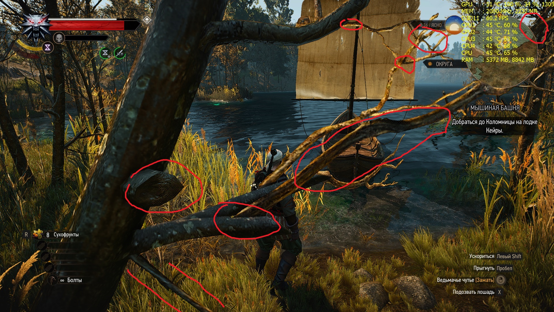Вот эти точки на скрине, которые на ветке дерева играют, часто встречаю в ведьмаке в той или иной ситуации в более или меньшей степени - это артефакты моей карты или особенность движка ведьмака 3?