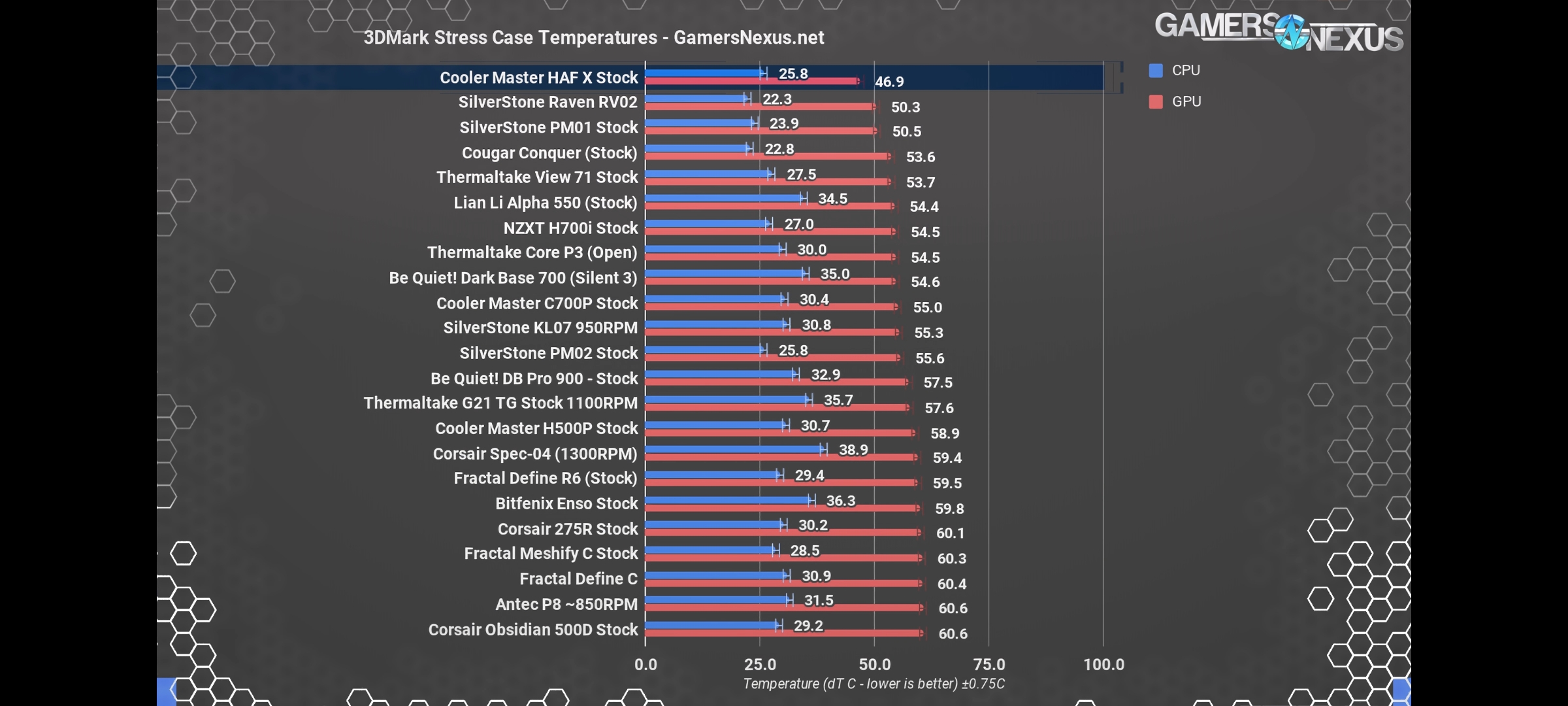 Кстати есть один корпус , который смог охладить видеокарту на пол градуса лучше . Судя по тестам с gamer nexus это cooler master sl600m. Спустя десять лет появилась альтернатива haf x))