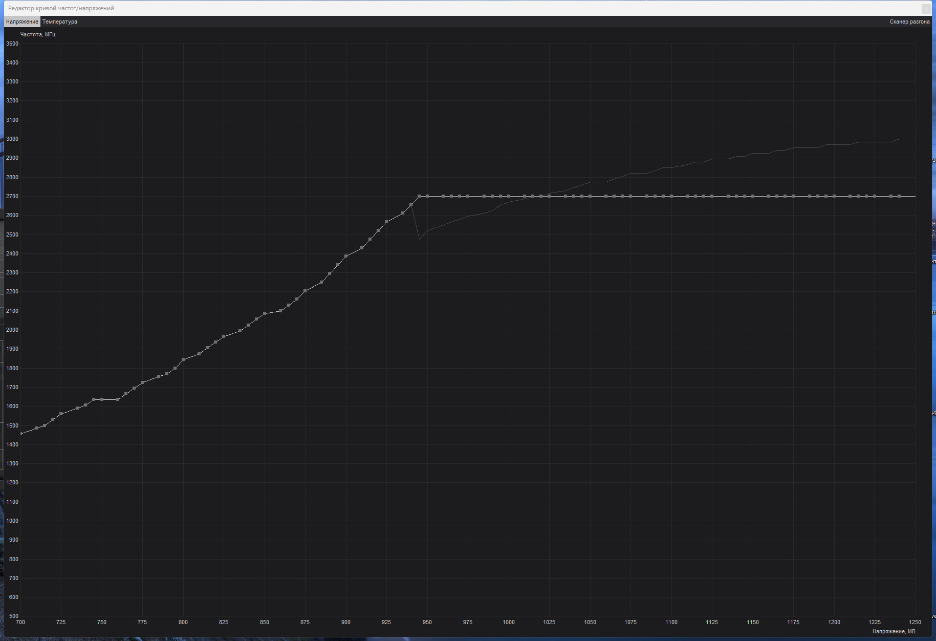 А этого и не нужно делать, так уж настроена курва с завода. Если добиться стабильности например на 0.95 В то все что левее будет стабильно за счёт одинакового оффсета. Это не сложно проверить протестировав какой оффсет будет стабильным на например 0.9 В и на 1 В, на 0.9 он будет выше. Ползунком же гонят как-то и никто там не тестирует всю полученную кривую частот/напряжений, а только частоты на максимальных напряжениях