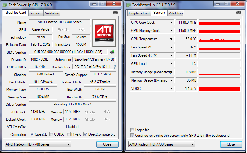 Ок.Позже попробую. Как соберусь карту гнать. При родном вольтаже 1.2(хотя GPU-z показывает 1.175 постоянно,а AIDA в 3D 1.2v и в 2D 0.825v) гонится 1100,1300