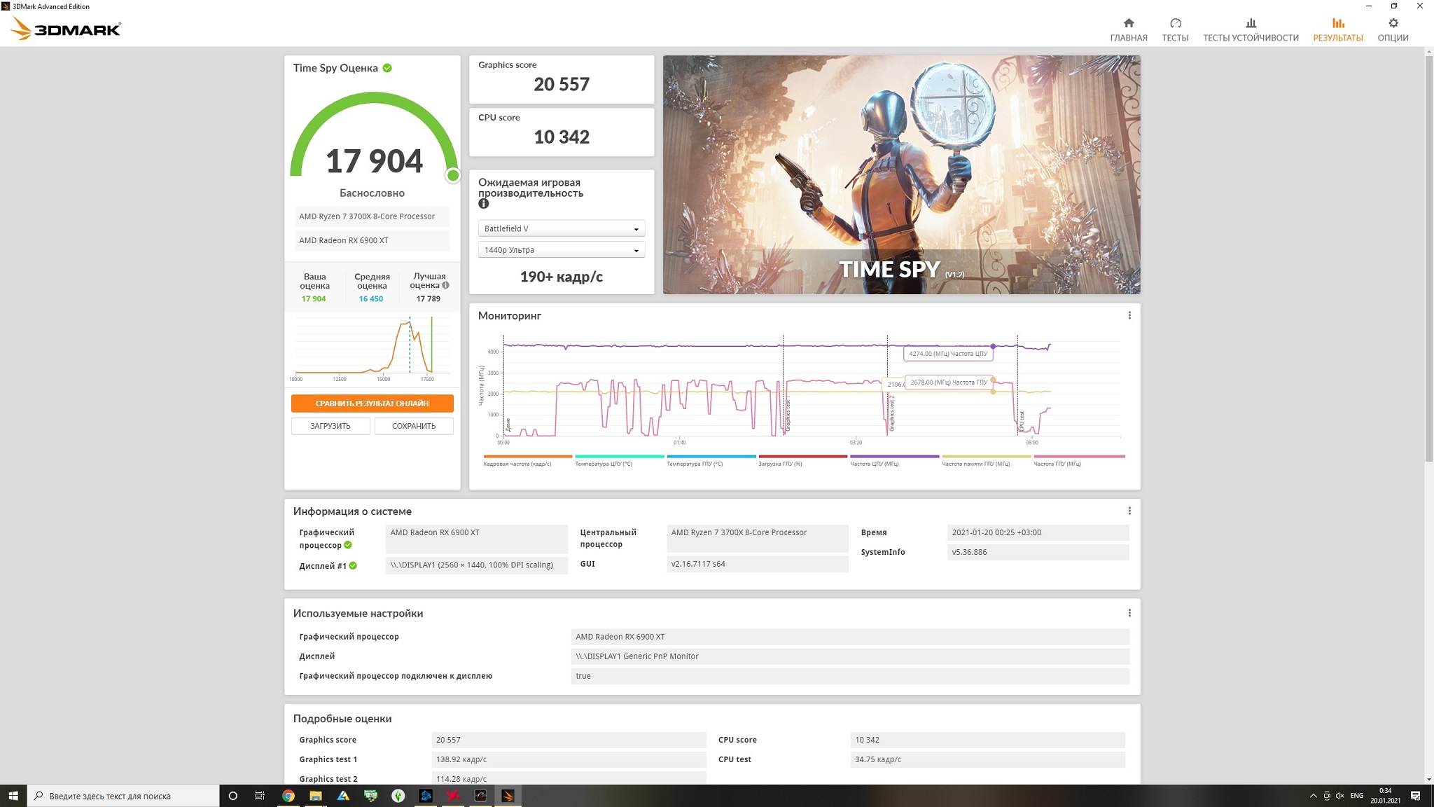Вчера с этими же настройками решил проверить не упирается ли видяха в температурный режим, открыл окошко, чтобы поступал холодный воздух с улицы(на улице -7 было), выкрутил все корпусные вентиляторы на 100(у меня под столом получился боинг на взлёте, ОЧЕНЬ ГРОМКО), только вентиляторы от водянки проца оставил в дефолте. В результате карта не прогревалась выше 65 градусов и результат ещё подрос.