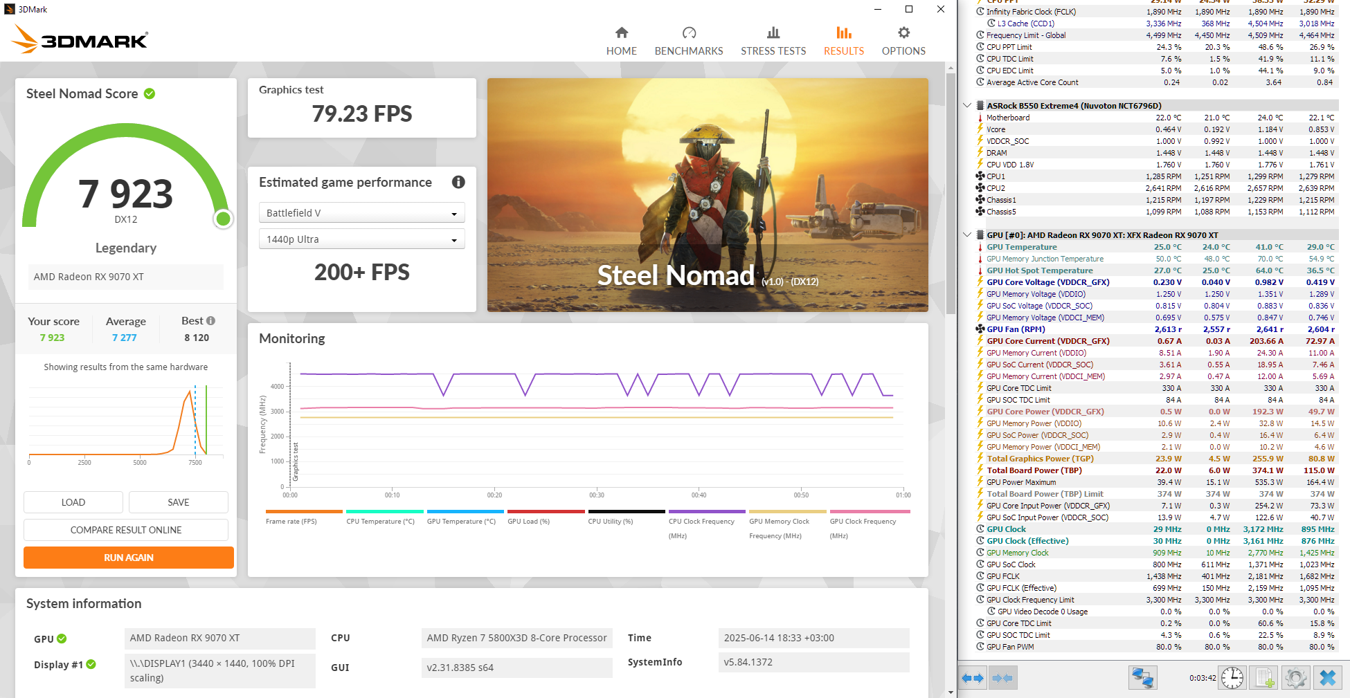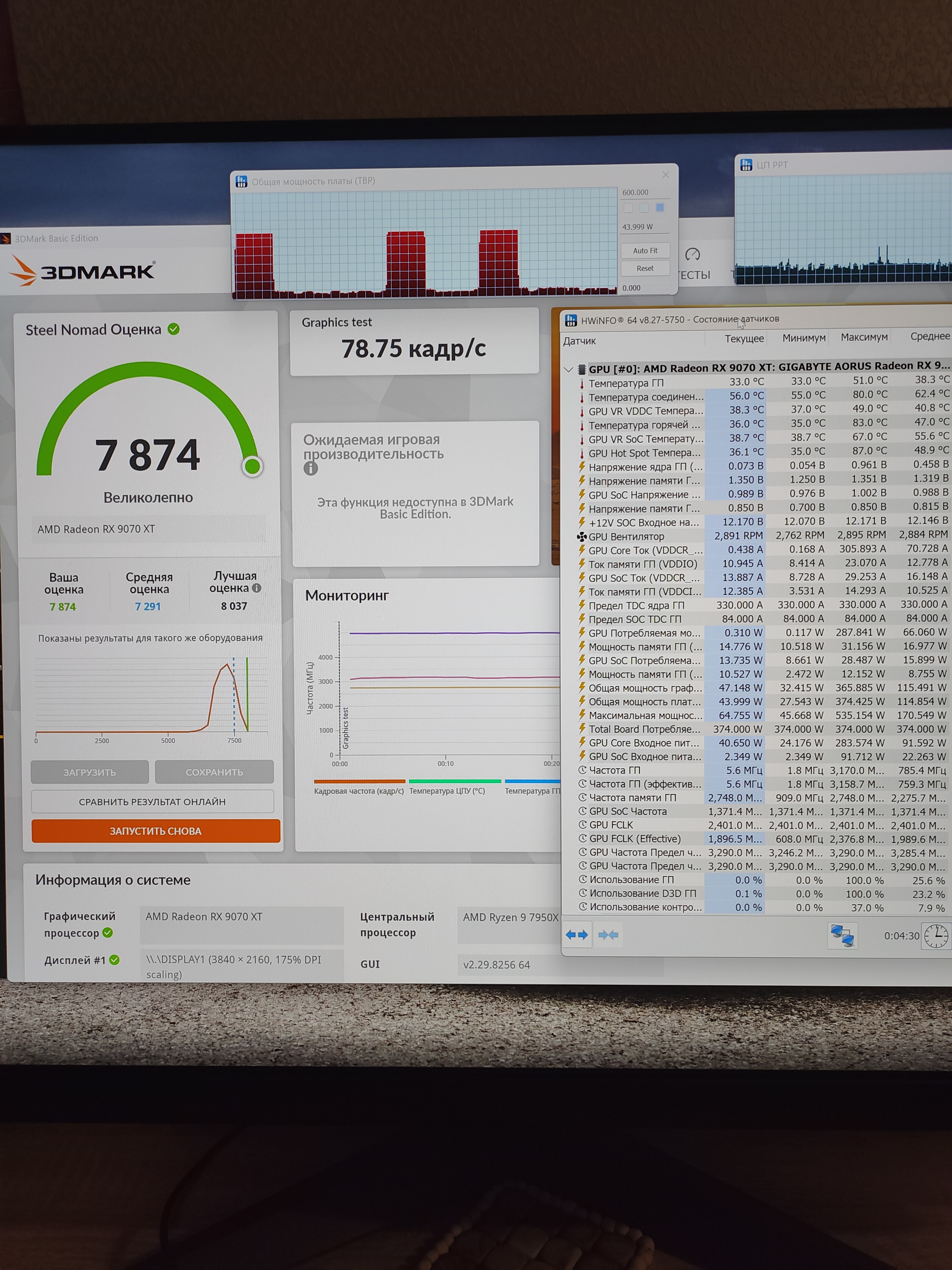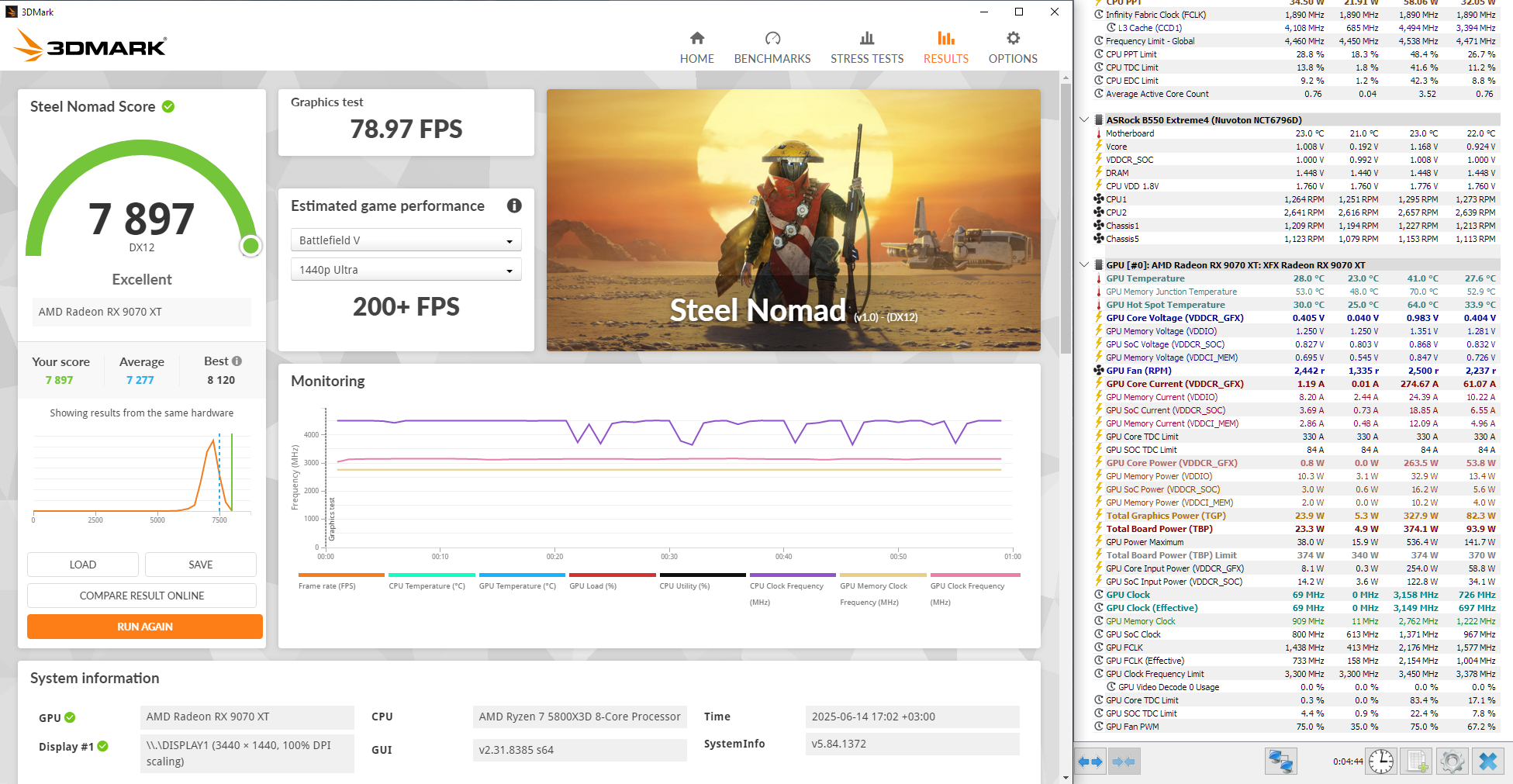 Хотелось бы взглянуть на телеметрию, т.е. запустить HWInfo перед стартом бенчмарка, а по окончании, сделать скрин рез-та с панелью сенсоров.