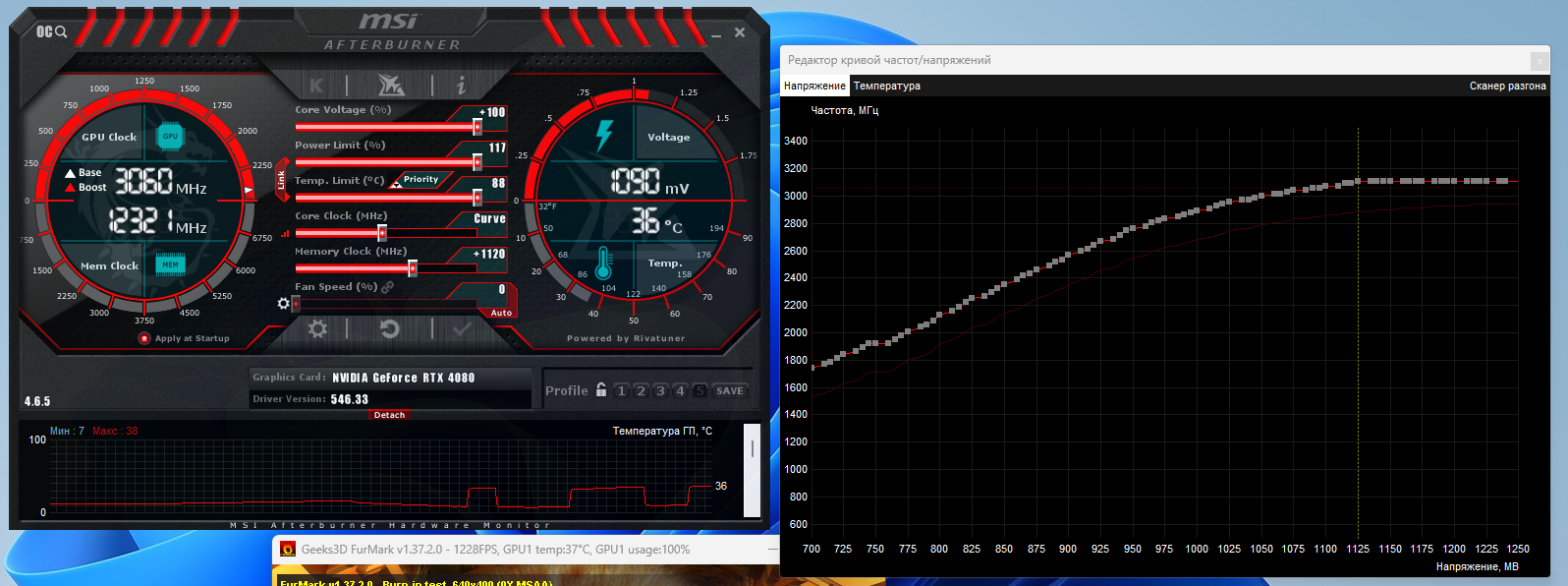 На курве потянуть точку на напряжении 1,1 В до нужной частоты. При этой температуре на курве просто одинаковая частота получается, а это темпа в нагрузке? До 1.11 В нельзя поднять напряжение? Там вроде максимально можно ставить 1,11 В, но это не точно. У меня нет 4080 чтобы проверить.