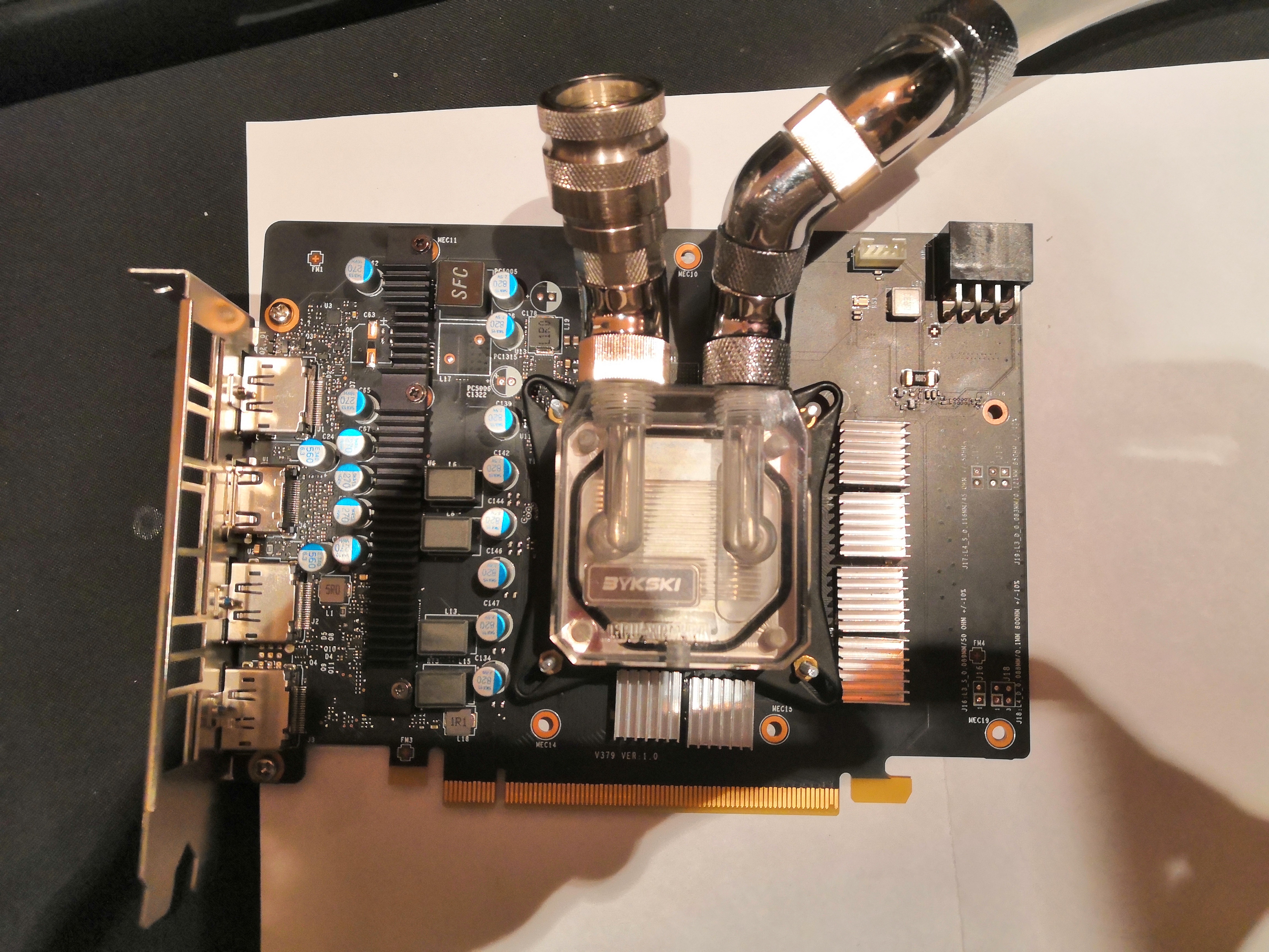 Принимайте в свои ряды. Не вовремя скинул свою 1080ти, но подвернулась MSI 1660 ventus xs 6g oc. Поскольку хорошая карта, это карта под водой, то сейчас примеряю разные универсальные водоблоки (приделал бы и такой фулкавер , но цена очень не очень). С охлаждением чипа вопрос решённый (Bykski GPU-XPM-PA), на питание буду мострячить Koolance MVR-100 через медные переходные пластины. Остаётся вопрос с памятью. Есть мысль нарезать медную шину и через двухсторонний термоскотч посадить всю эту конструкцию. По идее должно хватить такого охлаждения