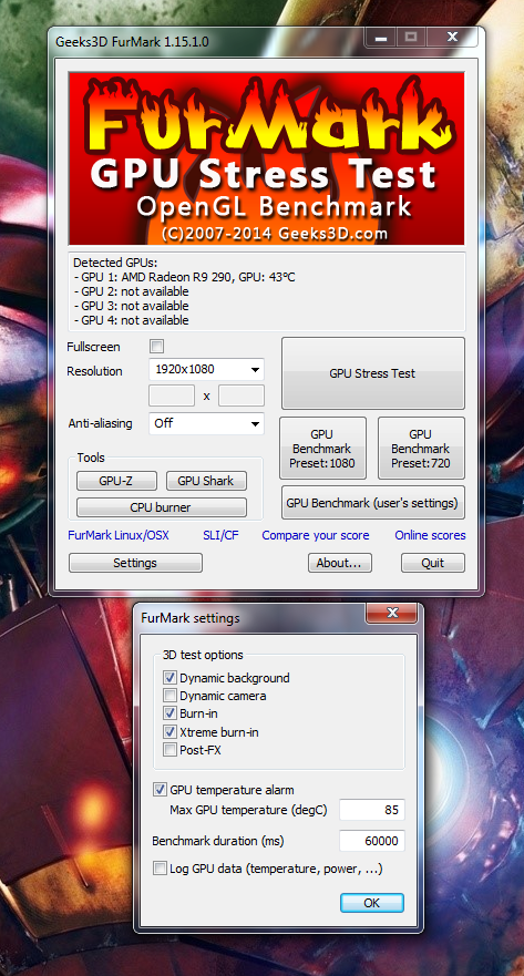 Добавлено спустя 3 часа 23 минуты 42 секунды: BYNC проверил фпс в фурмарке ,в итоге у меня был включен Anti-aliasing 8X MSAA с ним 10 фпс,отключил вобще ,сразу 38-40фпс стабильно,температура остановилась на 80 градусах, эт норма? А вот скрин после 3д марка