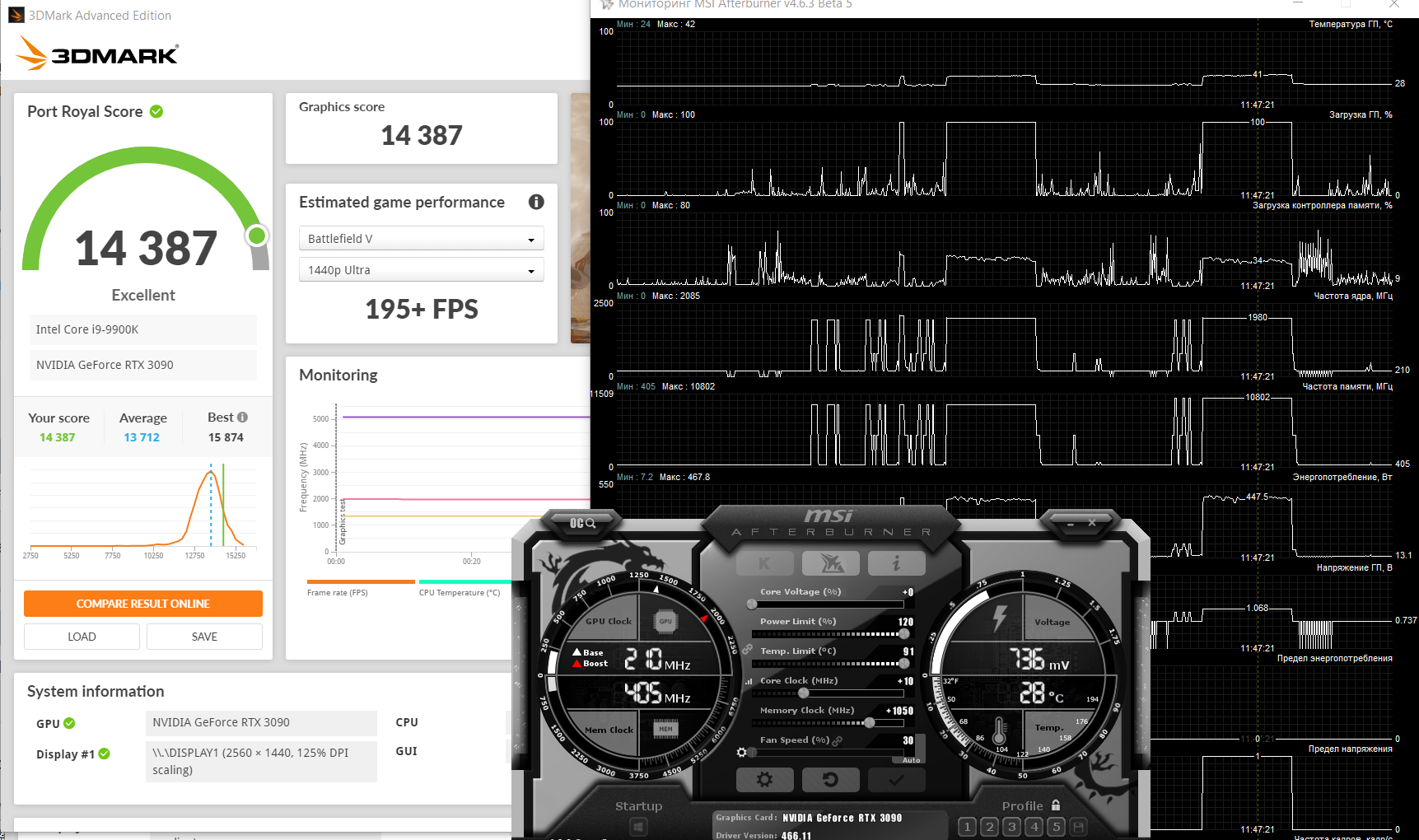 все эти показатели в порт рояле бред сивой кобылы и абсолютно галимое и бесполезное пискомерство (не имеющего с реальностью ничего общего даже близко, сейчас объясню почему)...Тайм спай еще можно рассмотреть ,как в целом балл всего компа ,но что меня лично смущает.Во первых надо отрубать г синк и прочие настройки видеокарты и убирать все красивости и возможности по сглаживанию и тд.Во вторых сама видеокарта будет работать в таком диком разгоне, что в любой игре этот разгон очень быстро унесет систему в синьку.Далее как правило под тест затачивают весь комп прямиком и целом.И это не является хоть сколько нибудь показателем плавности игр от слова совсем.Меня просто удивляют перцы, которые покупают 3090 не для того что бы в 4 к играть на 4 к монике с 144 герцами ,как в моем случае.Играю сейчас в crossout и newerwinter и очень радует картинка ,на 2к уже сразу вижу мыло, непривычно стало.А покупают ее(3090) только что бы кидать скрины, кто как смог ее вжарить и тп...Некоторые покупают шунт мод..))некоторые задрачиваются с прокладками что бы снизить хотя бы на пару градусов памяти в майнинге.Потом карты благополучно дохнут и владелец не успевает отбить цену карты)).Я лично попробую майнинг когда появиться активный бек к моей 3090 tuf oc.Но ек пока не шевелятся что тов эту сторону.Ну ответьте себе на вопрос вы всегда покупаете микроволновки что бы ложить туда футболки?и велосипеды что бы развешивать на них белье?разве не этим занимаются люди которые покупают высокопроизводительные компьютеры ради Бенчмарков и бесполезных синтетических тестов?Процессорная индустрия забуксовала потому что возможности кремния уже выжраты..Только видеокарты прогрессируют.Поэтому они не торопятся с ддр5 потому что вы ничего не получите.Вас опять в сотый раз завлекут бесполезными технологиями с громкими названиями...Да мой старый комп в спальне делает все тоже самое на паскале и старом скайлейке...только в 2к. Единственное что прогрессирует это видеокарты а процессоры и мамки с оперативкой ,буксуют уже очень давно ,ибо уже все выжрано из кремния.Просто маркетинг и программисты- это все что осталось.