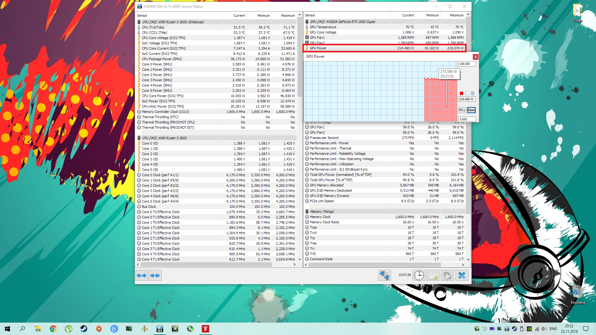Через gpu-z смотрел, и это при ос +9% через тандер и +1к по памяти сверху через тот же тандер, лимит стандартный, 100, не повышал, не понижал. Игры не Марио, Лара, ас Одиссея и другие подобные игры, где загруженность гп 99%, 195 максимальные значения, которые видел, если накинуть ещё лимит, то можно и 215 увидать, но смысл накидывать, если карта итак вывозит без повышения паверлимита. Если есть ещё какие то более точные проги для отслеживания потребления подскажите, гляну показатели и в них)