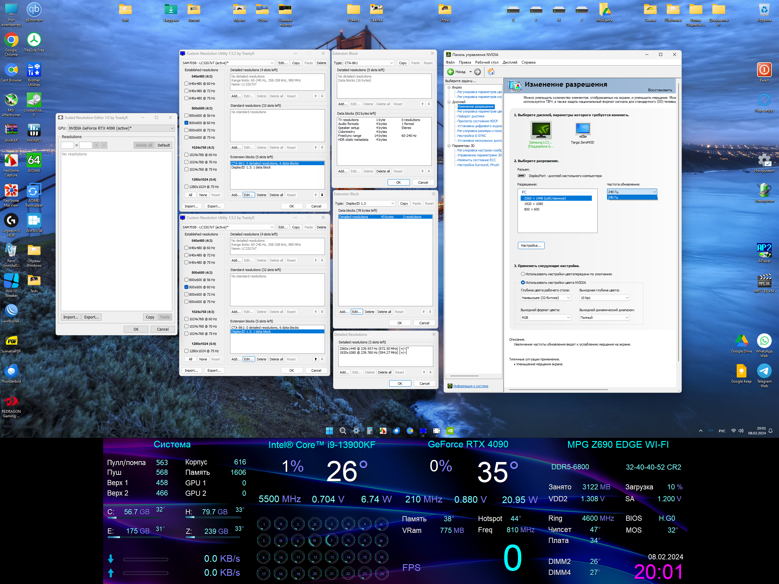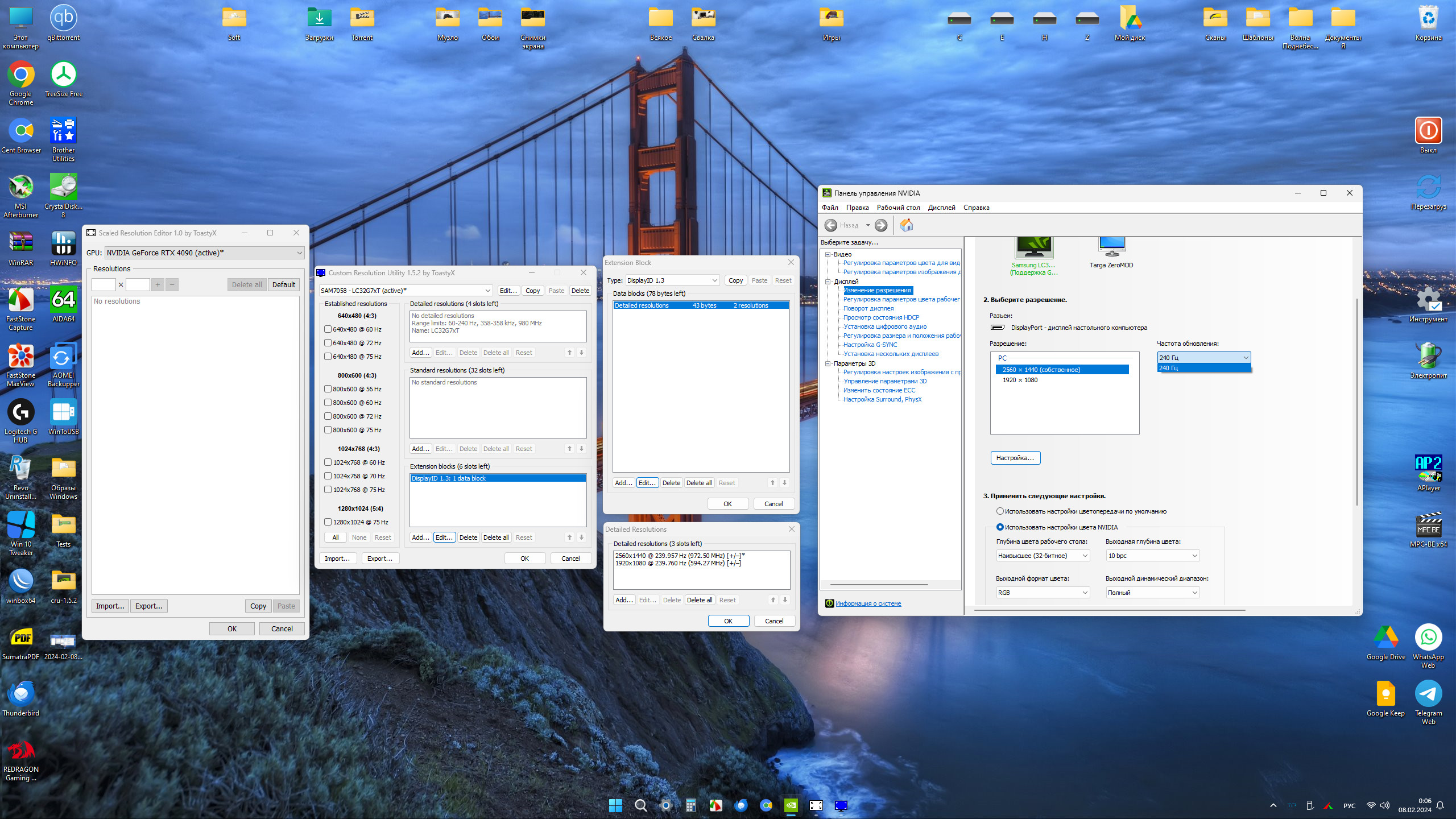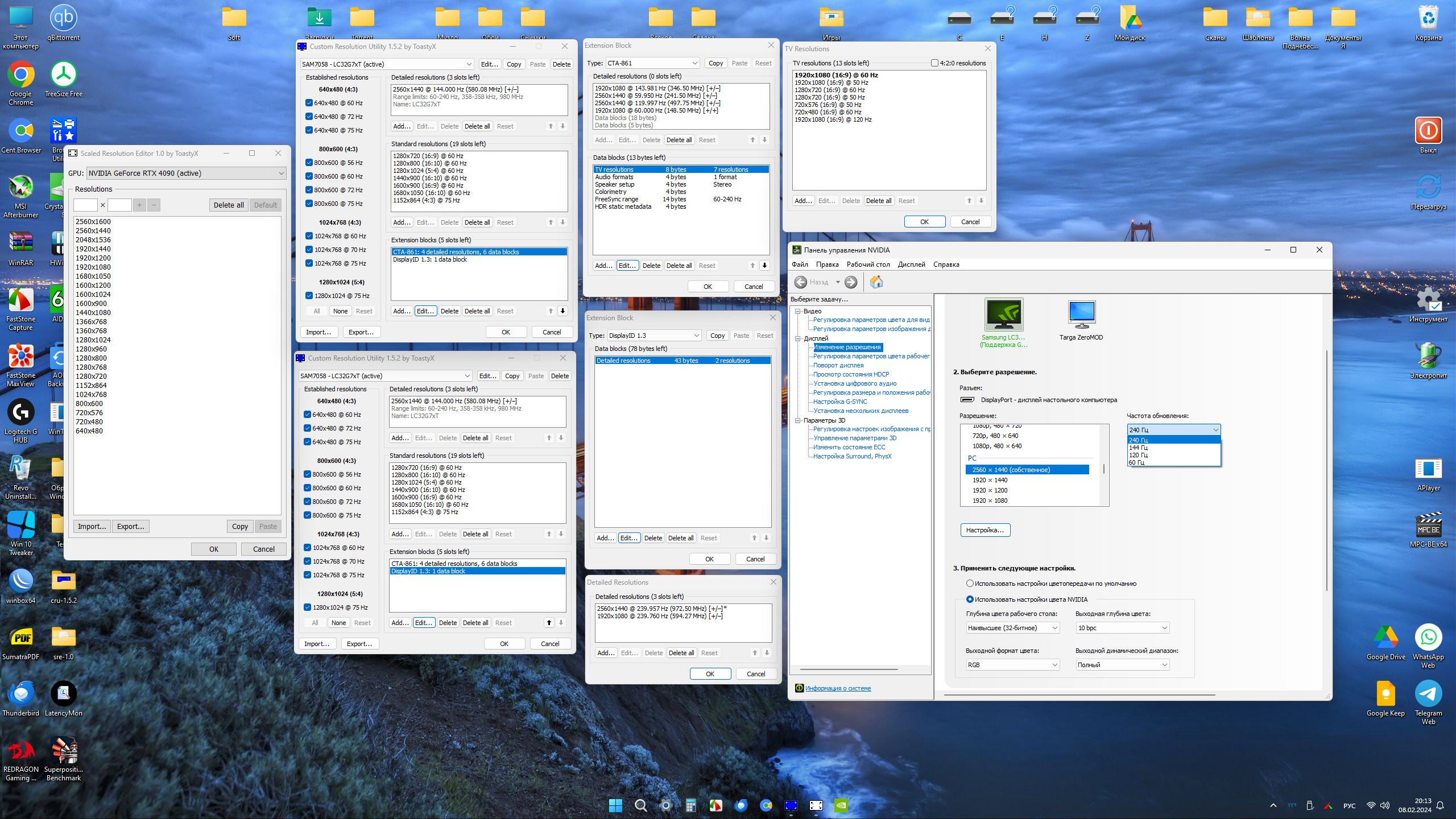 Я всё же немножко переиграл и оставил галку только в CRU, а в SRE удалил всё. Потом удобнее будет после обновы драйвера просто в два клика в SRE удалить всё и усё. Также в DisplayID оставил все два разрешения для 240Гц. Всё работает идеально. Такое ощущение, что вообще всё стало быстрее запускаться, система летает, просто шикардос Никогда бы не подумал, что видеодрайвер может влиять на скорость запуска программ.