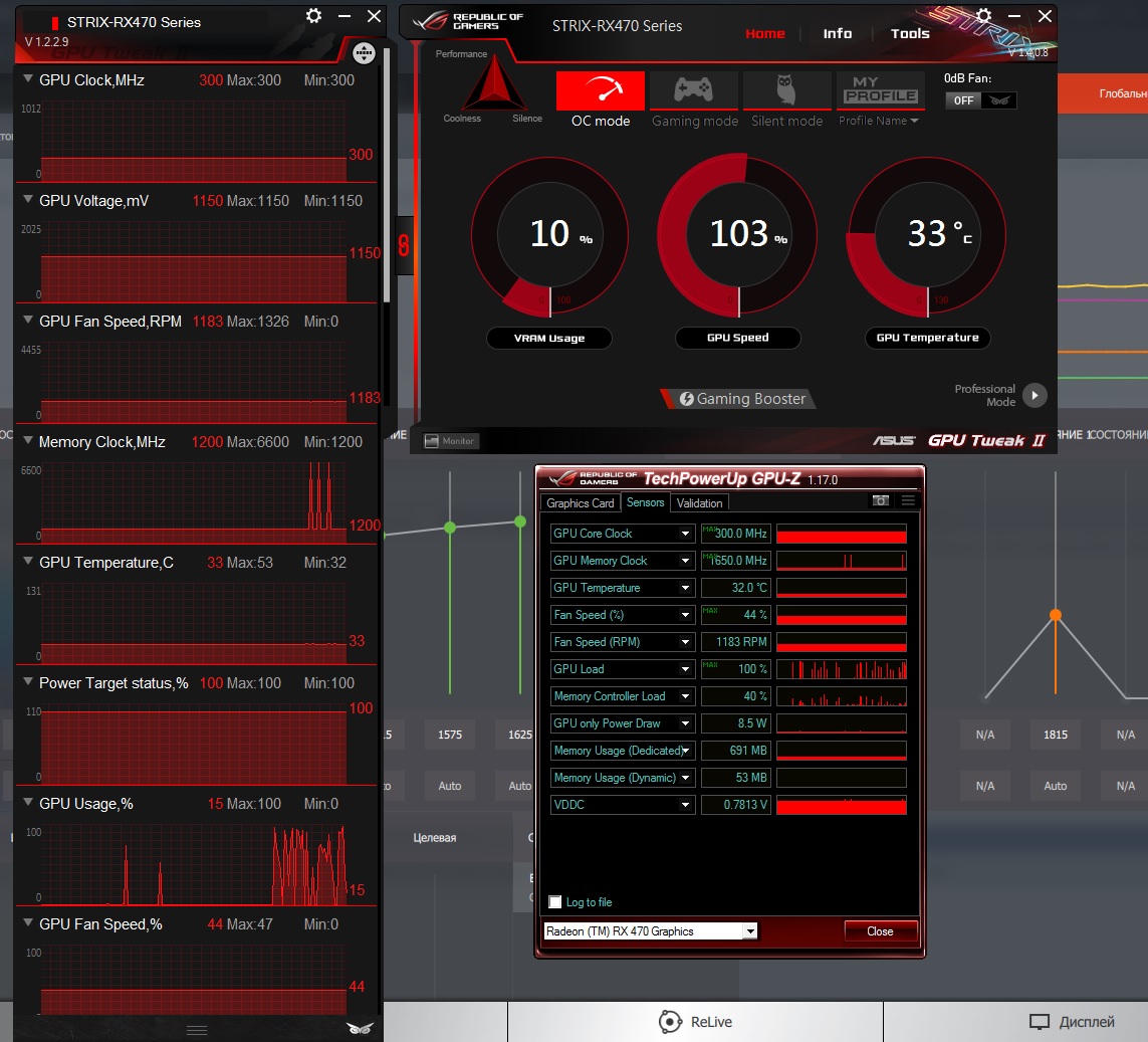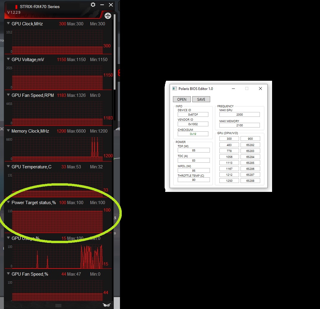Доброго вечера. Уже глаза болят от бесконечного листания форума. В общем взял ASUS ROG STRIX RX 470 Gaming OC 4Gb, установил последний драйвер, биос тоже вроде последний (015.050.000.000.000000), а она упорно не хочет работать, как ей полагается. Частоты не меняют своих номинальных значений, ни при каких условиях, то есть 300/1200. В итоге любая игрушка 5-7 летней давности нагружает ее на 100%, и она просто не хочет разгонятся. Какие варианты есть для дилетанта в этом деле?
