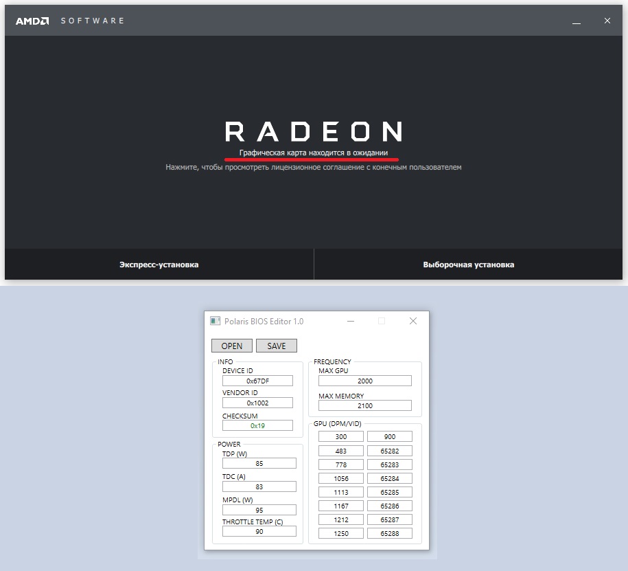 Q: Какие лучше ставить драйвера? A: Желательно сначала установить стабильные WHQL-драйвера с сайта AMD и только потом, по мере необходимости, устанавливать новые драйвера, NON-WHQL. Удалять драйвера от предыдущей карты рекомендуется с помощью DDU (Display Driver Uninstaller). Если ставите новую карту после Nvidia, то делаем в таком порядке: - удаляем драйвера с помощью DDU и выключаем компьютер (жмем "Удалить драйвер и выключить компьютер для последующей замены видеокарты"); - вынимаем GeForce; - вставляем Radeon; - загружаемся в ОС; - ставим драйвера Crimson (Adrenalin) с сайта AMD.