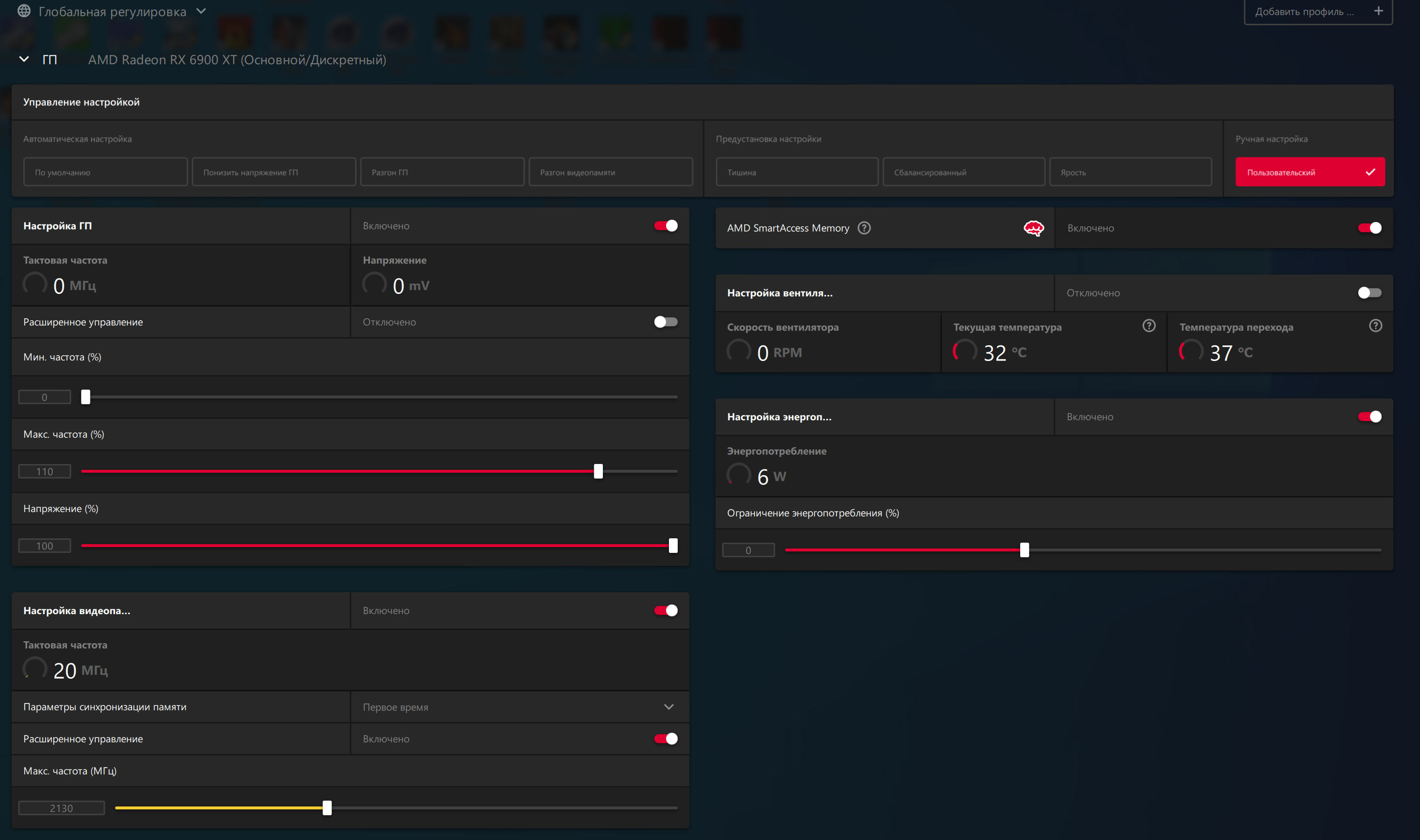 Имеется RX 6700 XT PULSE GAMING OC в MSI afterburner выставил обороты вручную, в 2D профиль работает, а 3D молотит на все деньги ~ 2000об как ему помочь подхватить схему из программы? галочку "использовать режим аппаратного..." также ставил или надо убрать ?!