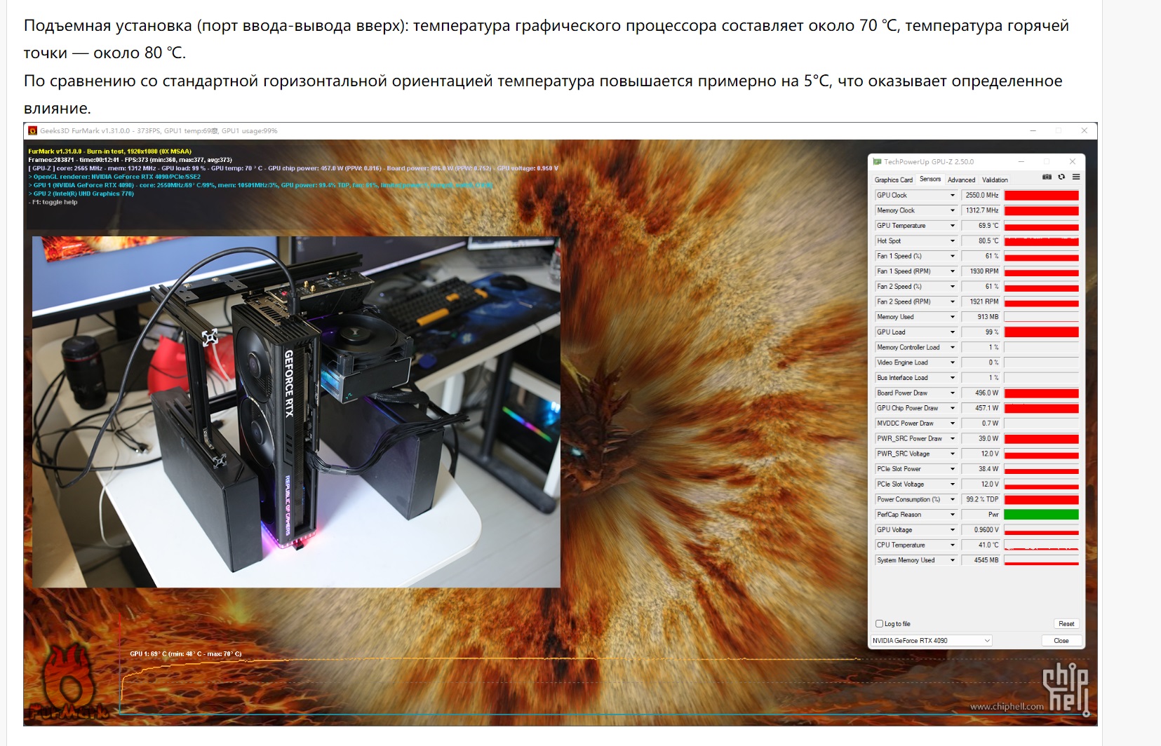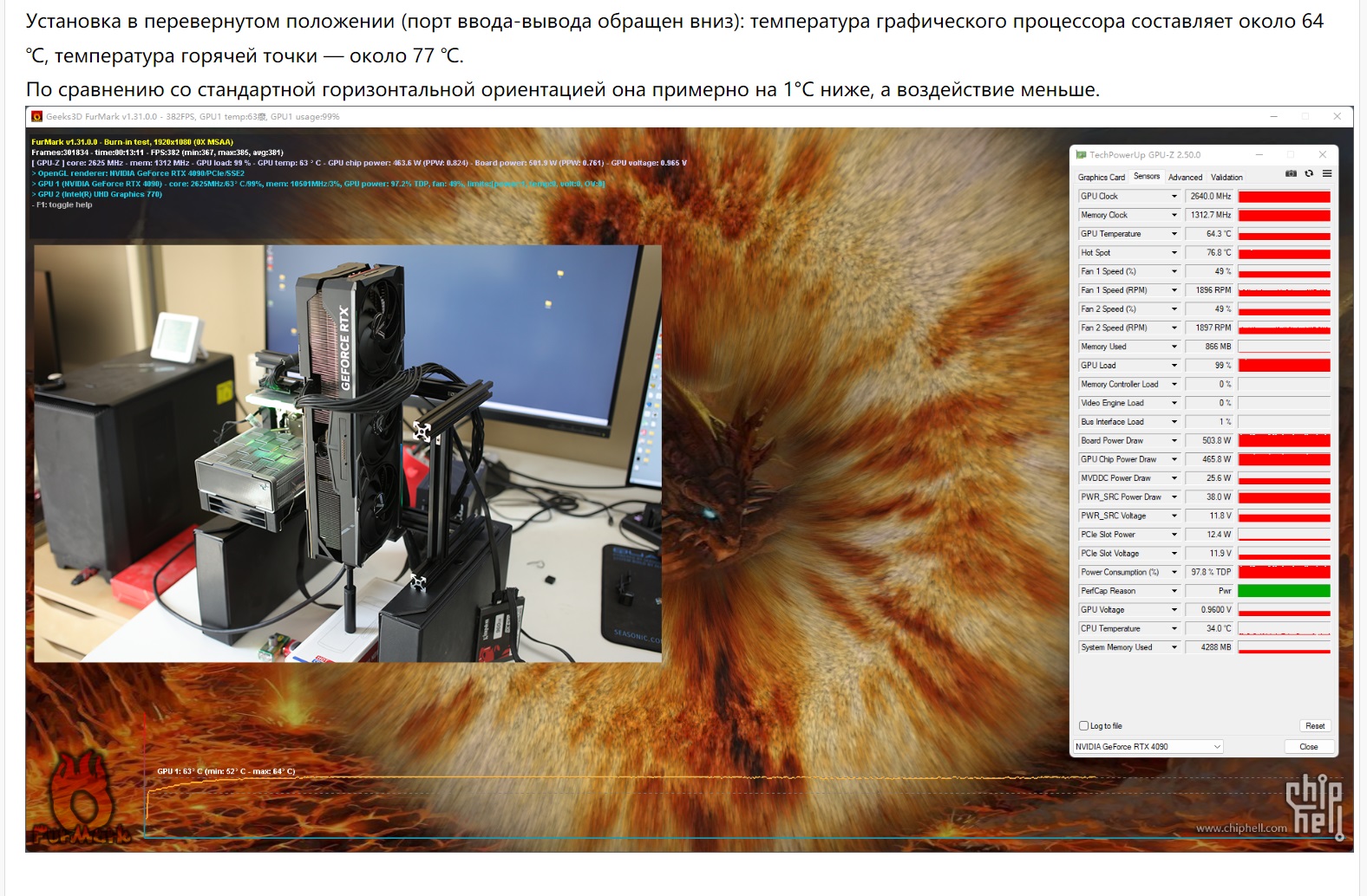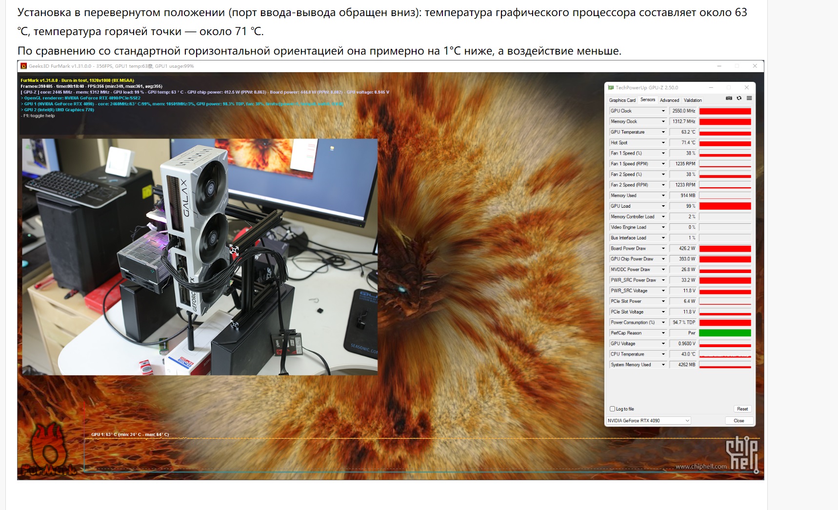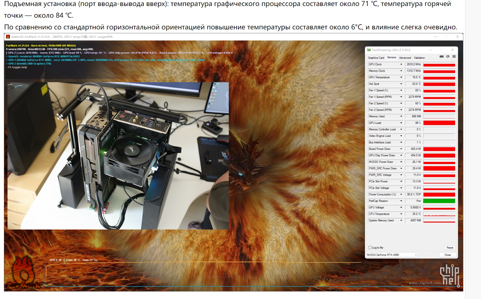 Посмотрел еще эти обзоры, у всех в горизонте, при схожей с температурой карты видеовыходами вниз, обороты немного, но выше. Лучшее положение - видеовыходы внизу)