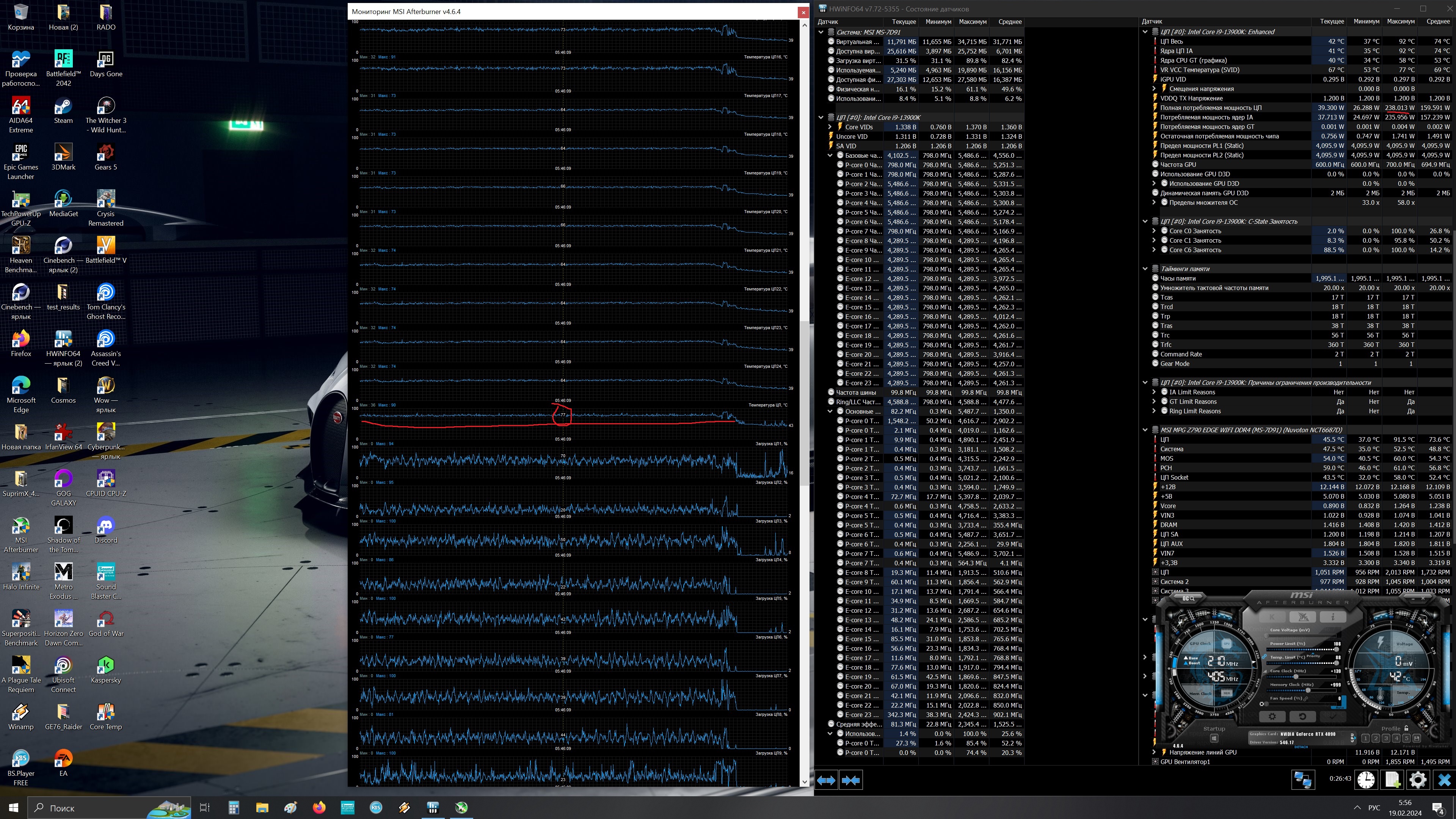 Зашёл в 5 баттлу и опупел...Как греется процессор(центральный, не вк)... С новыми драйверами(вк), что-то не так , очень сильно стали нагружать процессор... I2Hard, кстати, это отмечали... Что произ-ть упала, а температуры и загрузка процессора выросла. По итогу, проц в пике 89... 75 средняя, для примера Киберпанк просто релакс... 63-5 средняя, с пиком 82. По ваттам Баттлу не потестил, сейчас гляну... Пошёл андервольтить ещё!