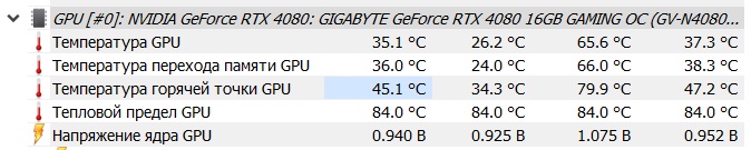 У меня в играх вертушки на 30% молотят всего, это 1150 об/мин, и температуры до 60°С, 55-57°С в основном. Хотспот - 67°С где-то обычно. Редко до 70-72°С, в самых тяжелых играх. Да вот прям ща играл, 4к, все на ультрах, как положено)) Без длсс.