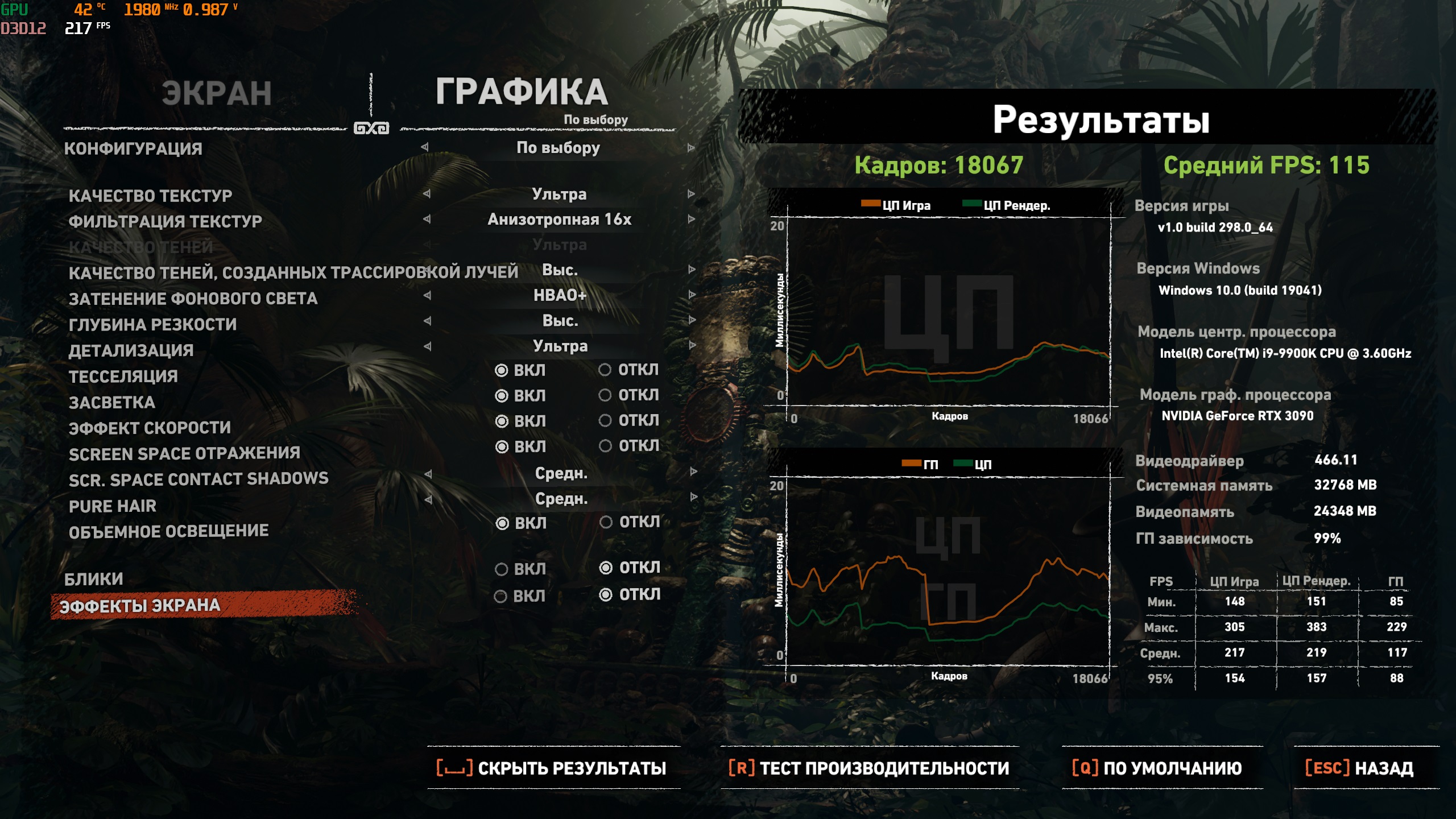 пробежка в среднем 60-75 кадров в секунду 4к все ултра фильтрация ненужна в 4к и также я засветил настройки драйвера.интересно конечно какая картина у владельцев 3090 и 11900к..интересно будет сравнить.надо попробовать записать другой прогой)а то у меня скрин рекордер игру в синьку уносит.