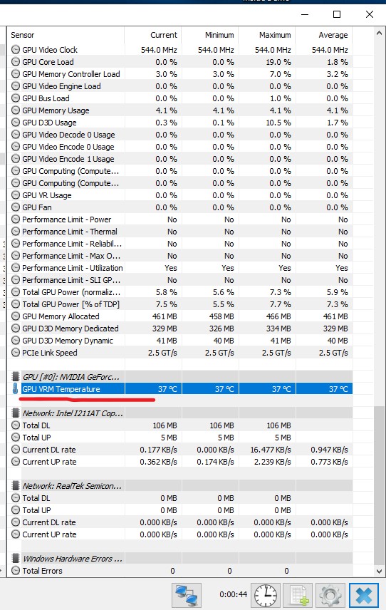 Я для себя принял за температуру VRM показания датчика, отображаемого в hwinfo. На скрине подчеркнут зеленым. В реальной нагрузке показания выглядят весьма правдоподобно.