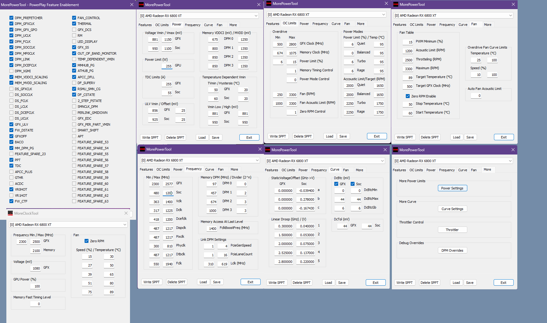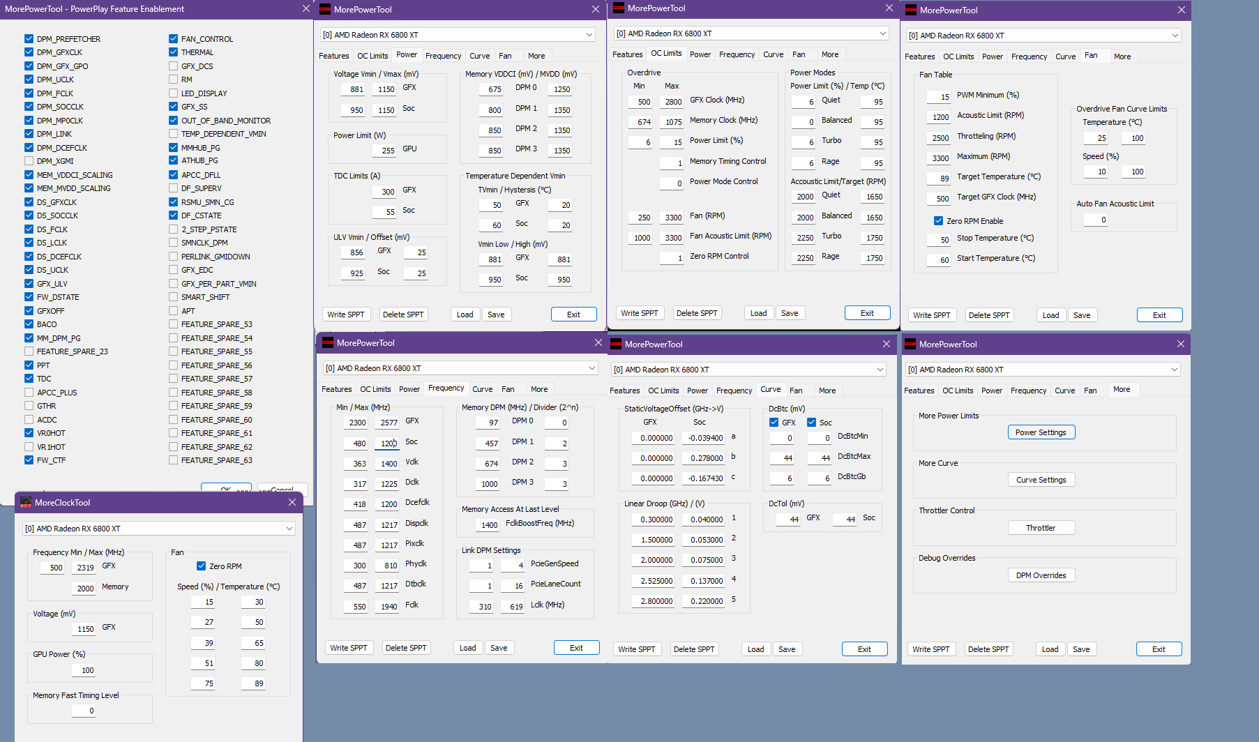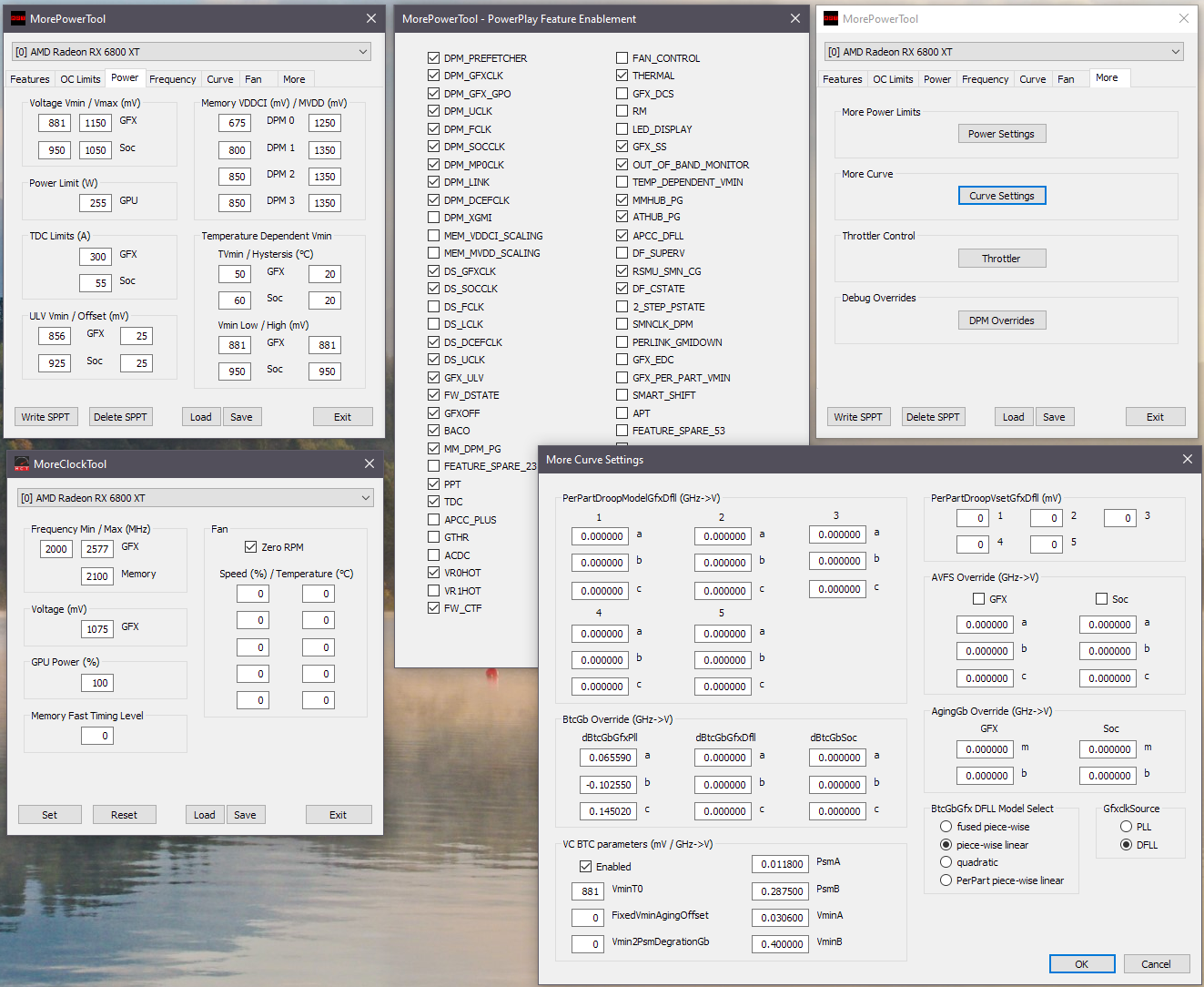 Эти скрины - для чипов ранних ревизий Navi21 и Navi22. Более поздние их ревизии (в т.ч. 6x50XT) и Navi23 менять только чекбоксы DS_XXXX. Вообщем у первых в Curve Settings, DFLL Model "Piece-wise linear", у вторых - "Per-part piece-wise linear".