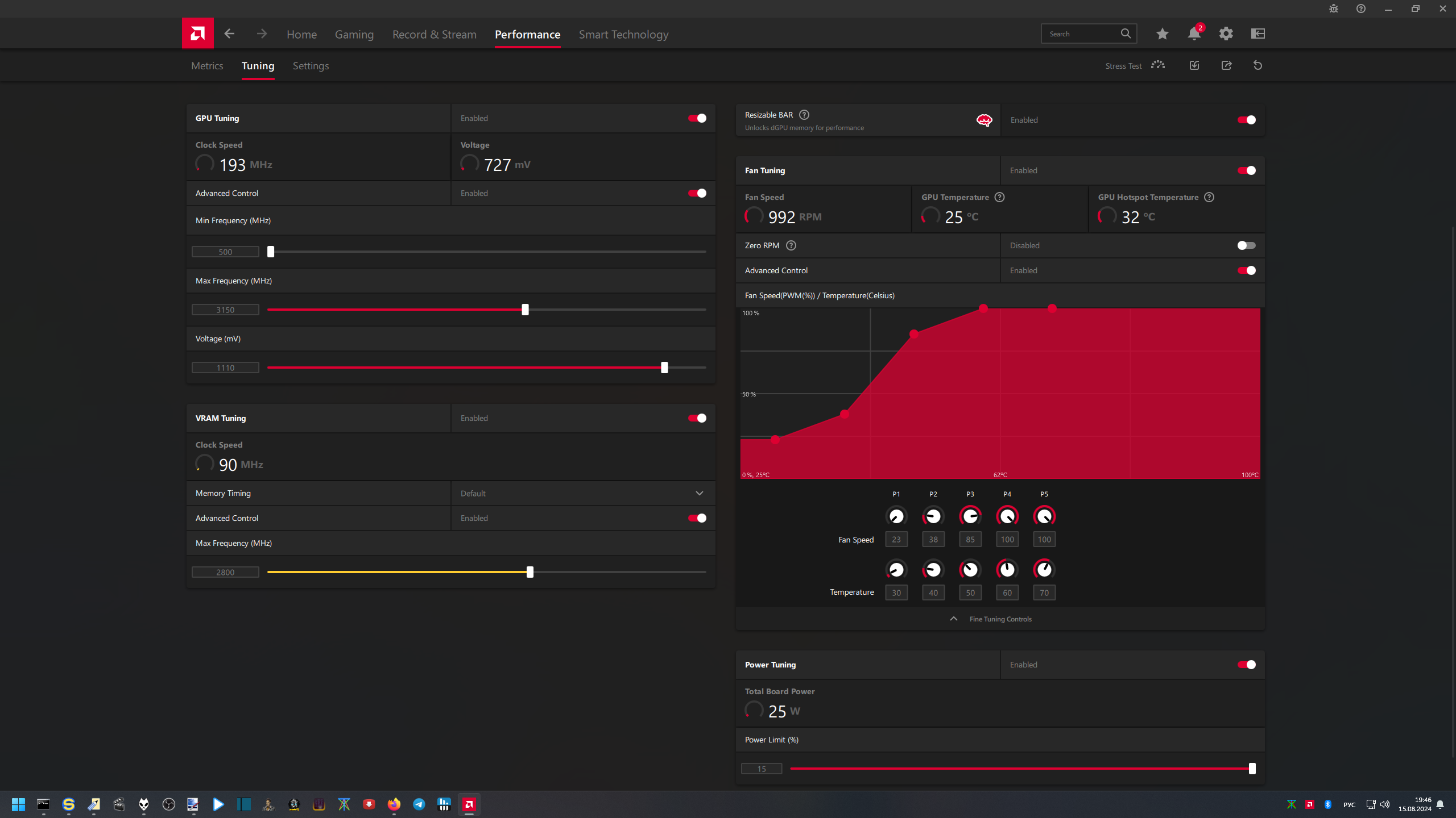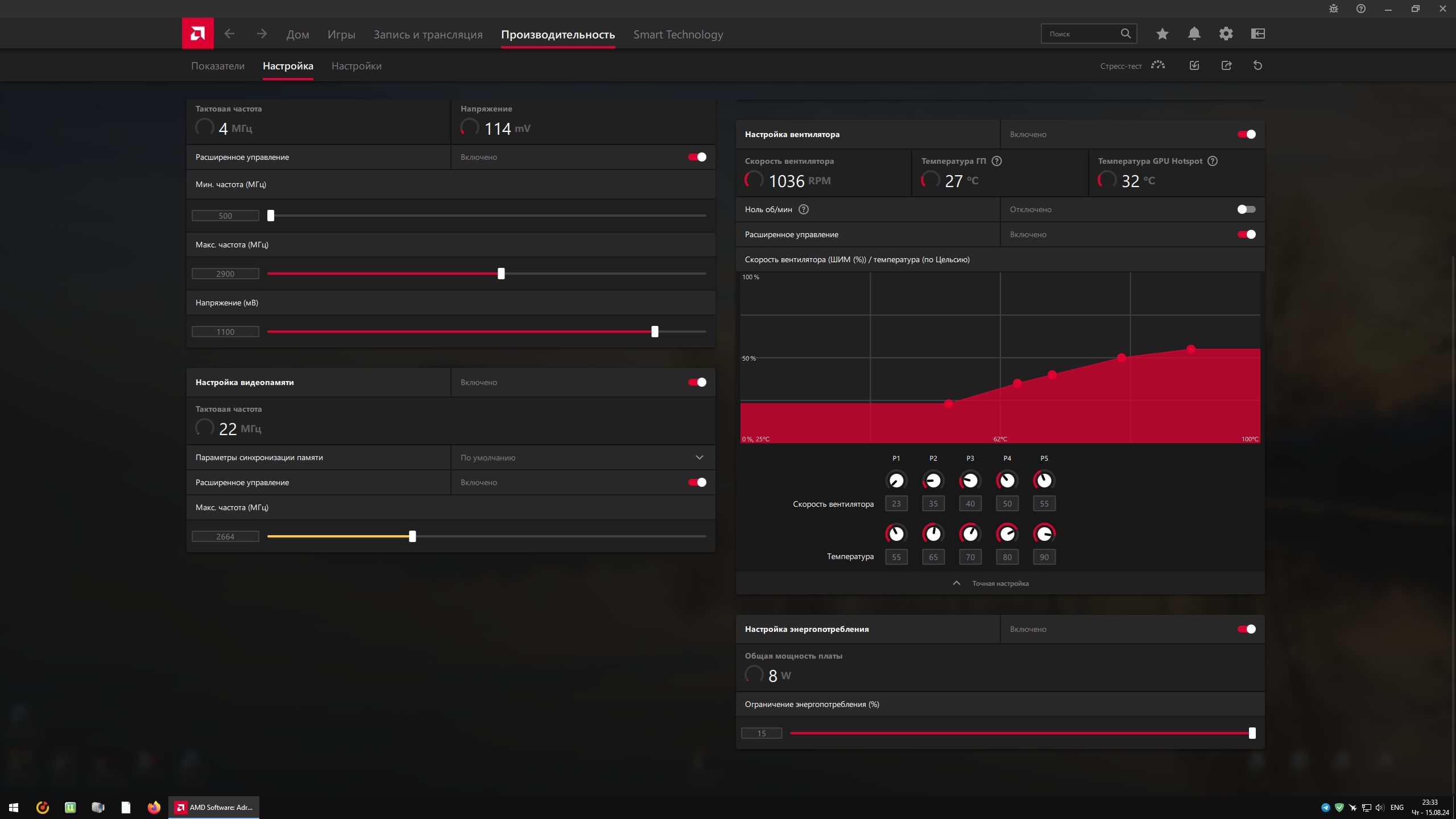 Взял 7800XT в конце января, после 1070Ti прямо бомба, много поколений пропустил.. Тишину обеспечить удалось андервольтом + вертушки придушил, до 1100 не слышно. По температуре, как я понял, ориентируемся на hotspot - даже курва вентиляторов на неё смотрит. Тормозил вертушки, смотрел как карточка греется - с 110гр сильно роняет частоту. А так в реальном использовании hotspot вижу до 85, хорошо. Но иногда в сложной ситуации до 90-95 доходит. И тут я подумал - а нафига я power limit +15% сделал? Ведь производительности хватает, фпс залочил на 60, карточка редко когда выше чем 85% используется в 1440p, зря только греется и жрёт. Ну и ползунок перетащил в -10% - частота и потребление упала, hotspot снизился, использование ГП не особо выросло.. Вопрос такой - я сильно в чем-то теряю, убавив power limit? фпс у меня залочен на 60. И ещё - Smart AccessMemory включить или выключить?
