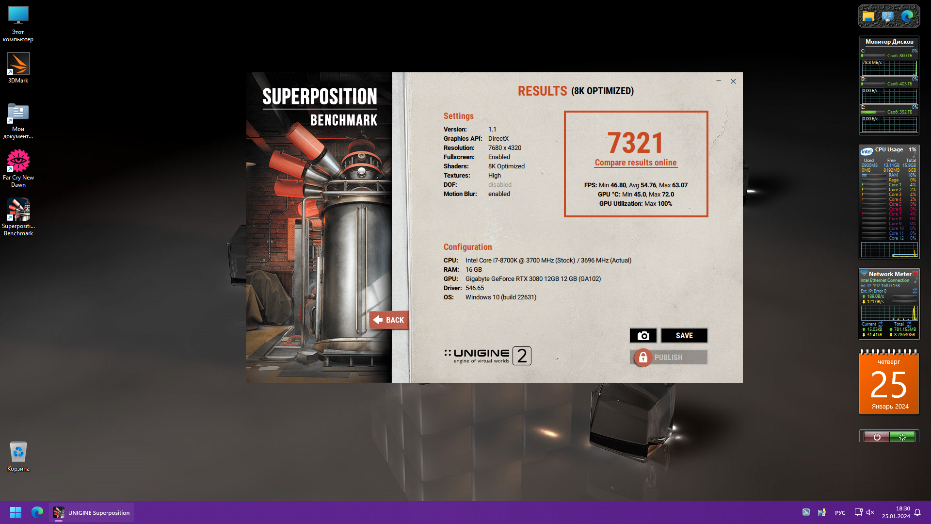 Да я и не сомневался в таком ответе. Интернет кстати открыл, по крайней мере на нашем сайте, не нашел ничего по 4070 супер, бла бла одни. На тебе, делается минут за 5, ну со скачиванием и установкой пусть 15. Может K2K не постесняется, помню времена когда его 670 обходила мою 680 и я как то не стеснялся выкладывать. Ну да ладно, морочьте людям голову что ваша супер равна 3090.
